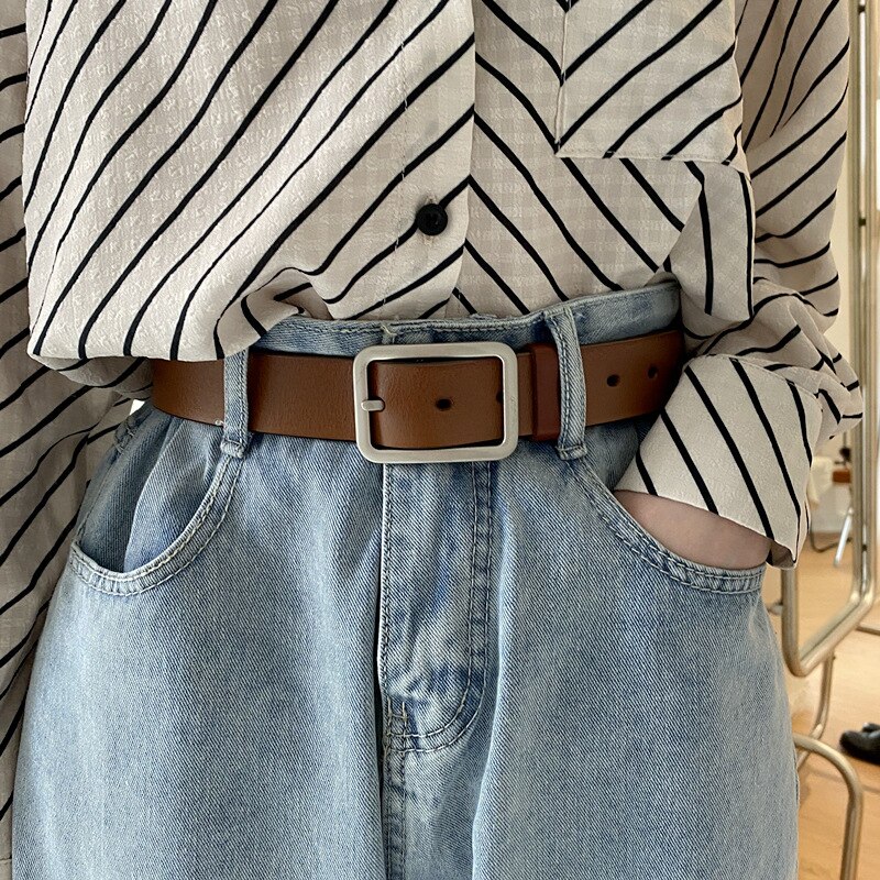 Ремень кожаный женский матовый с золотистой пряжкой, простой пояс для штанов, Роскошный дизайнерский брендовый подарок