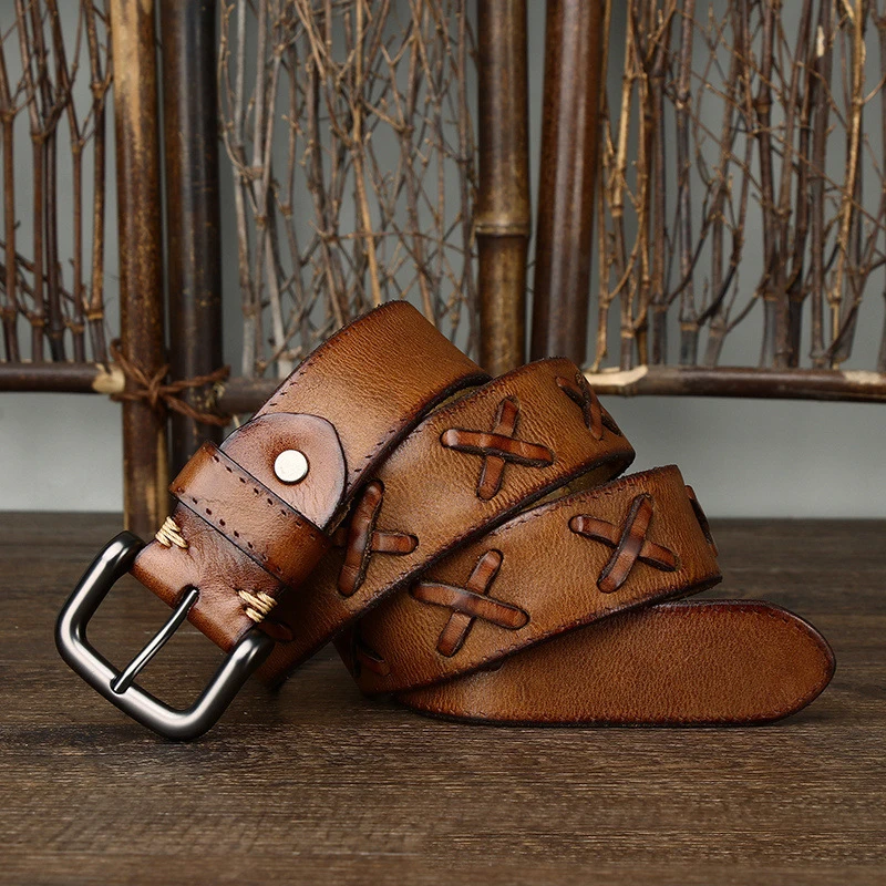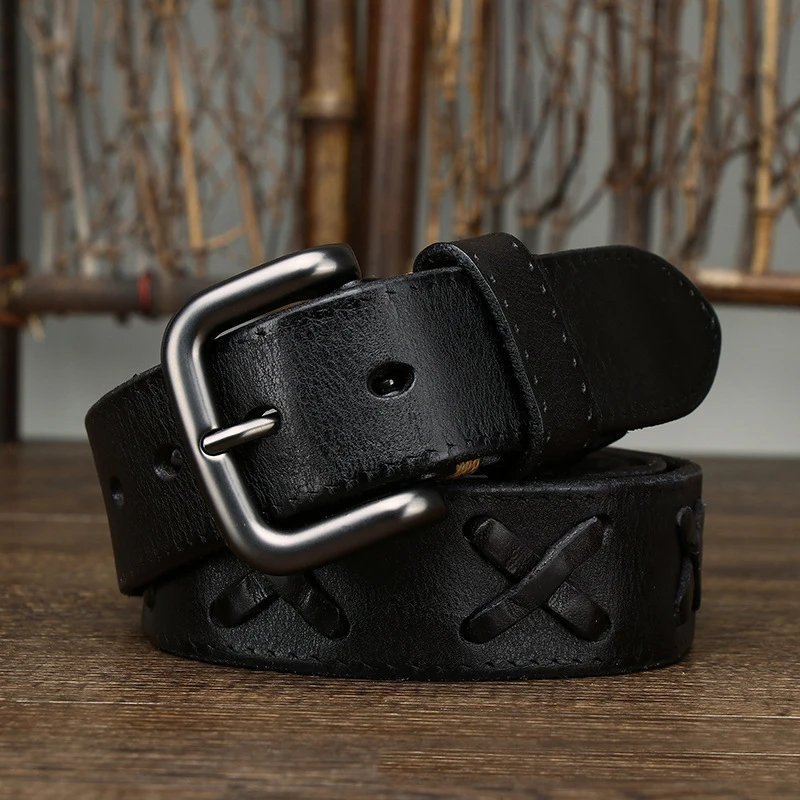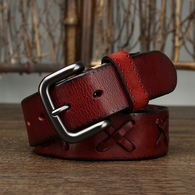 Ремень мужской из коровьей кожи, толстый, 3,8 см