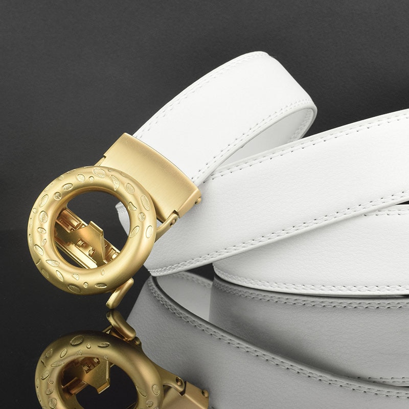 Ремень мужской из натуральной кожи, модный роскошный классический пояс с автоматической пряжкой, белый дизайнерский