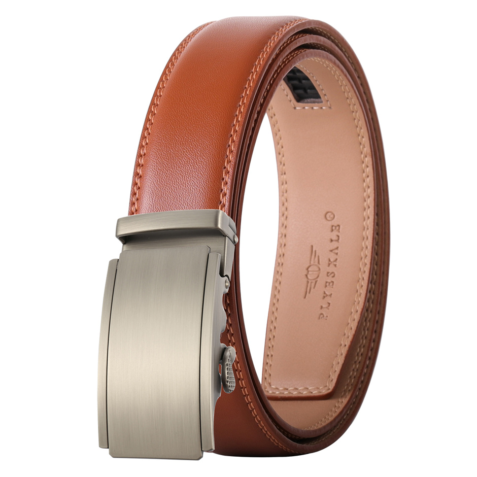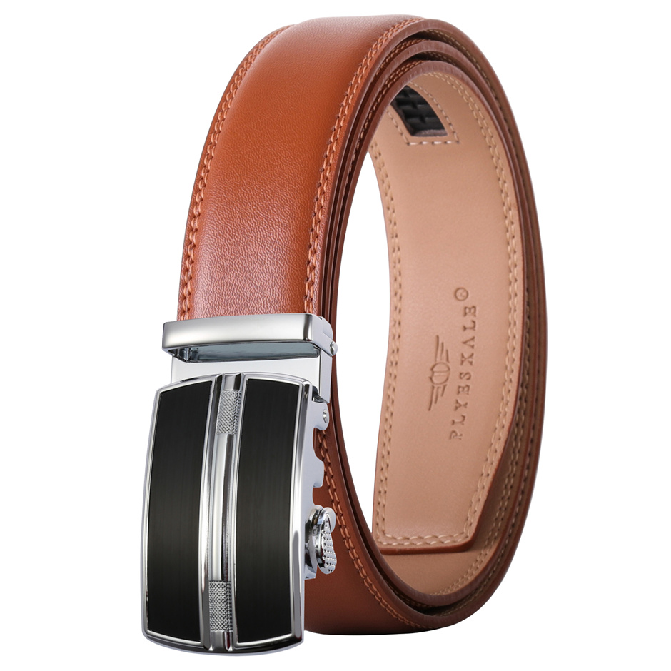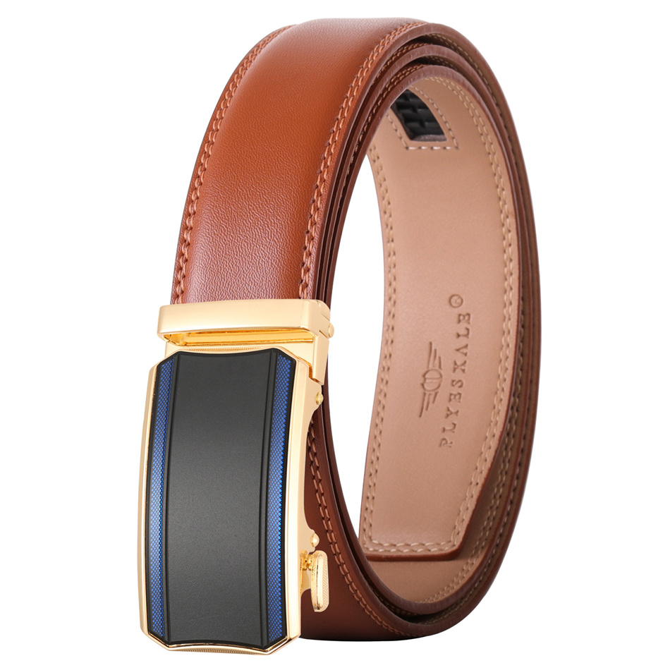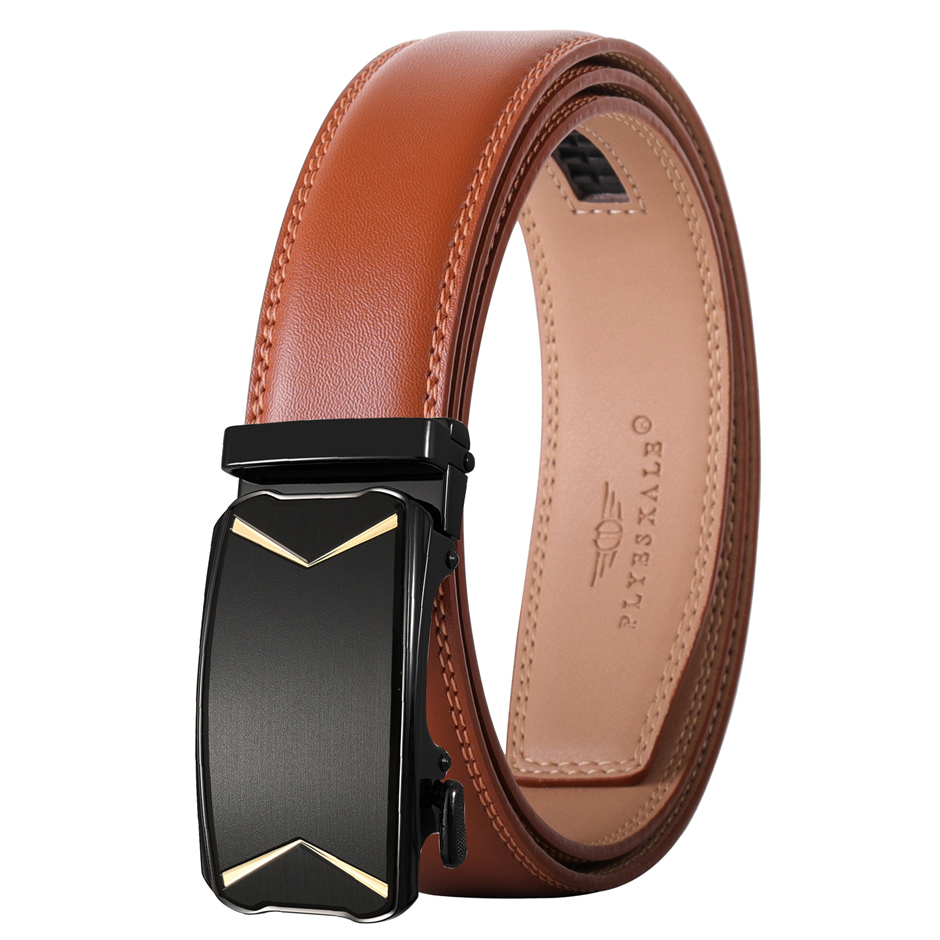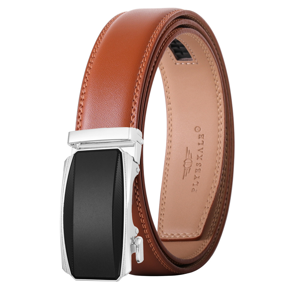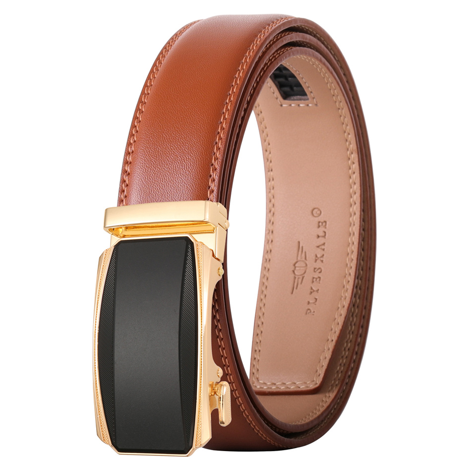 Ремень мужской из натуральной воловьей кожи, коричневый, Повседневный, с автоматической пряжкой, B622