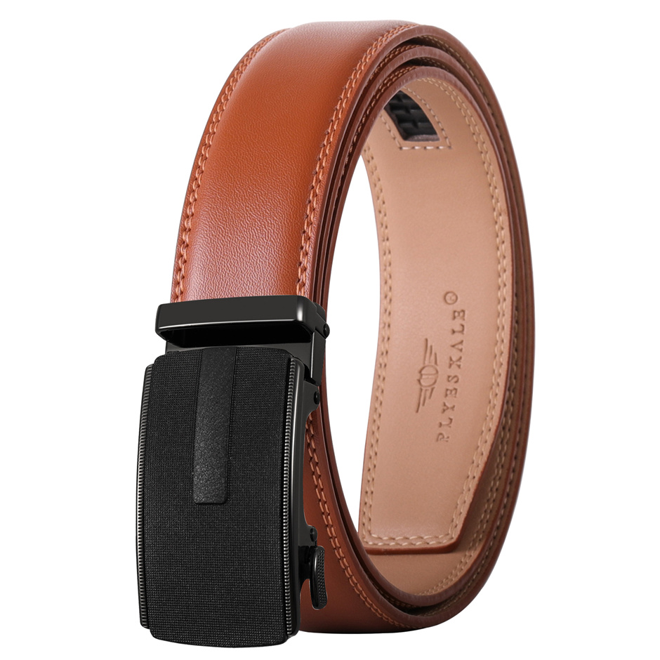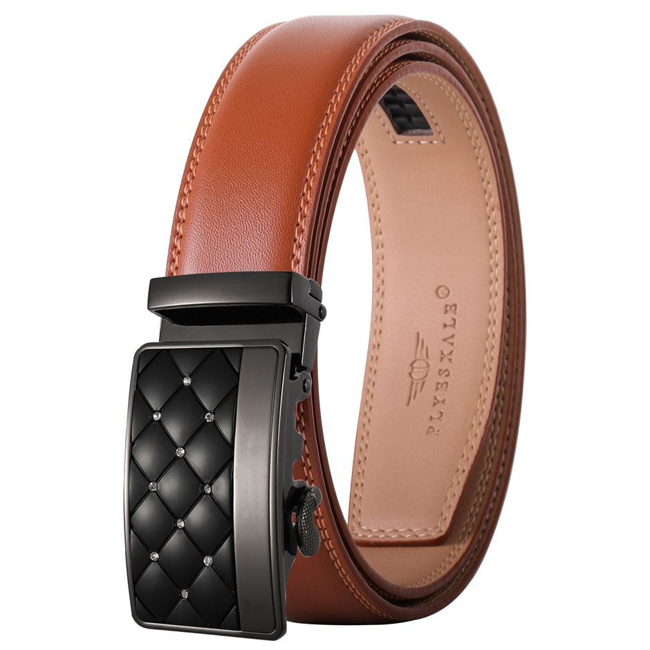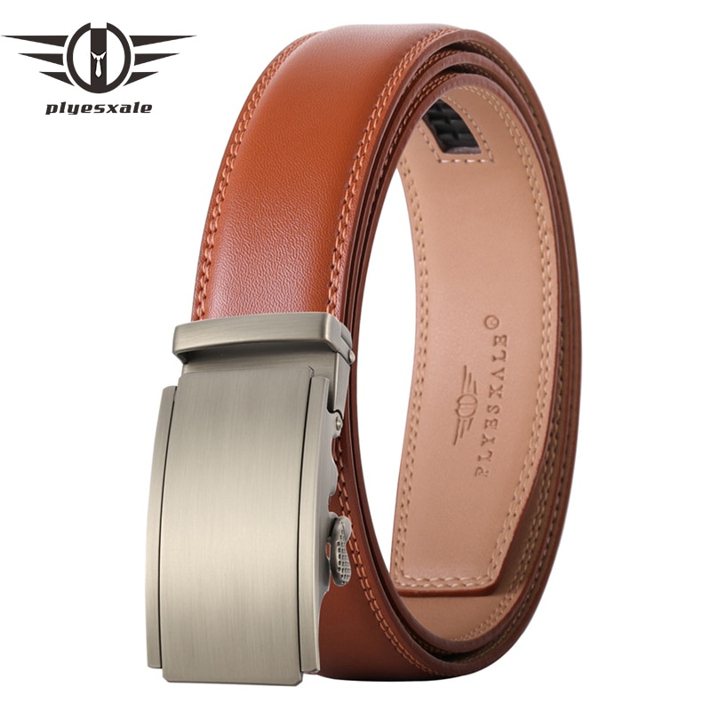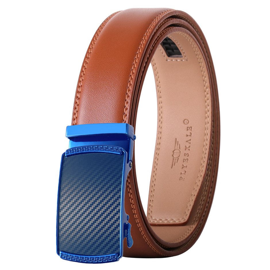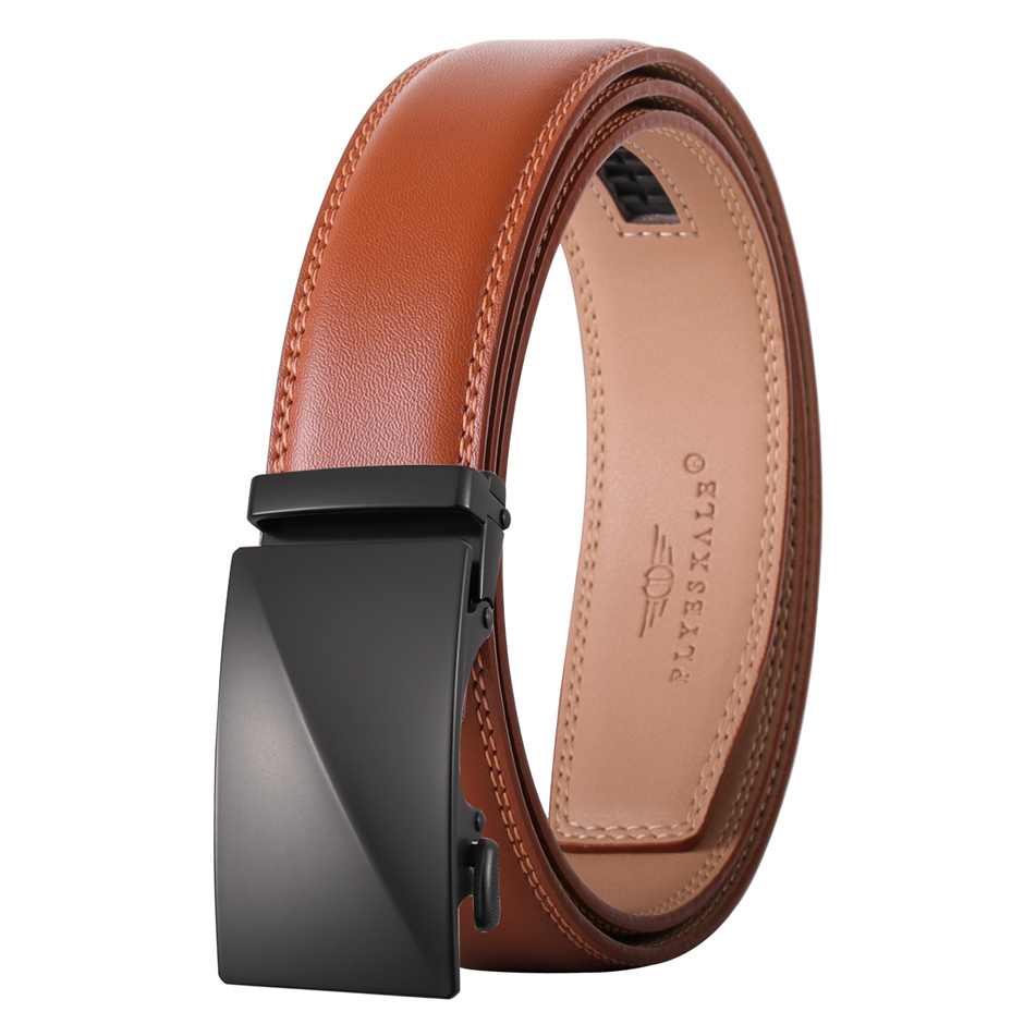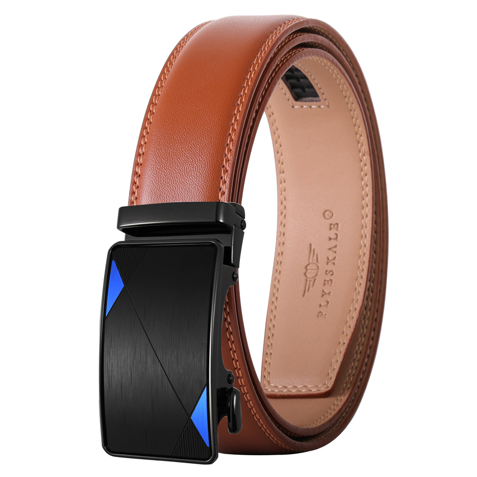 Ремень мужской из натуральной воловьей кожи, коричневый, Повседневный, с автоматической пряжкой, B622
