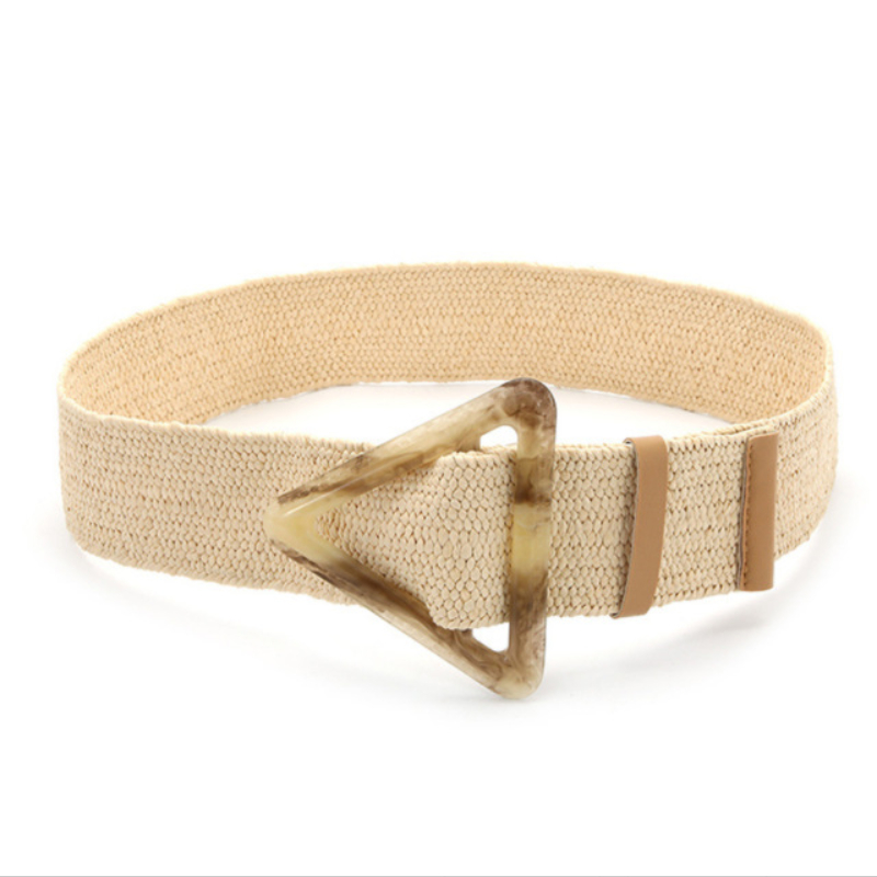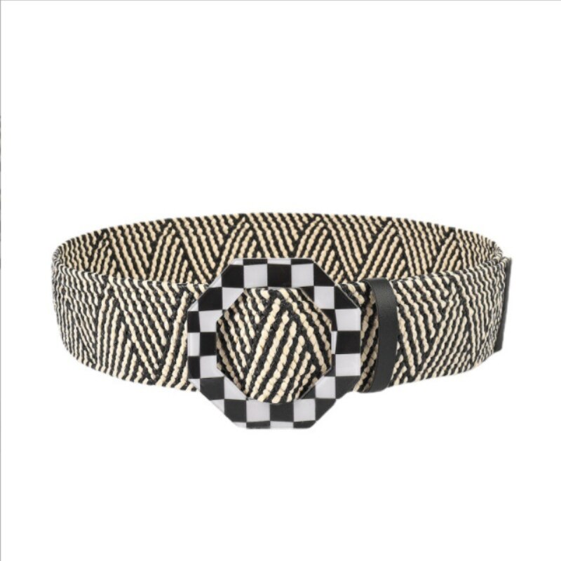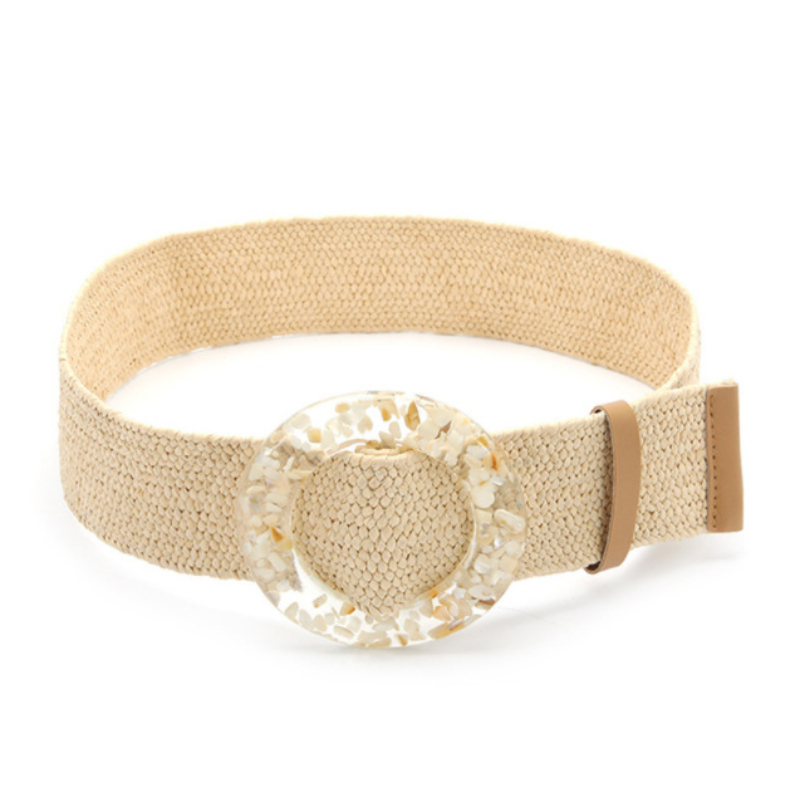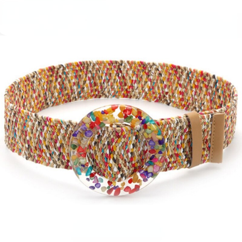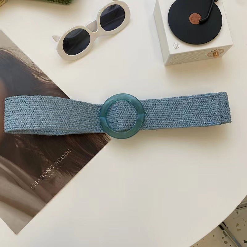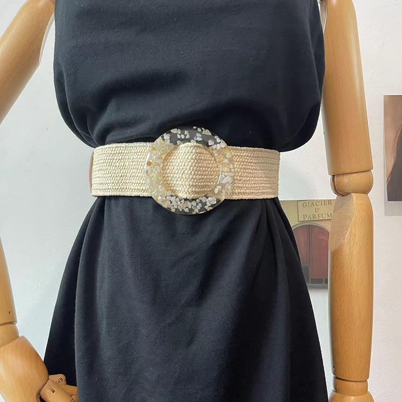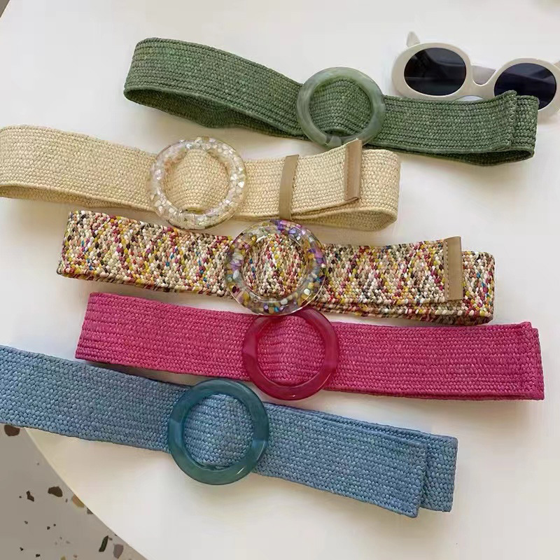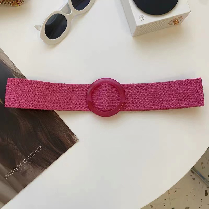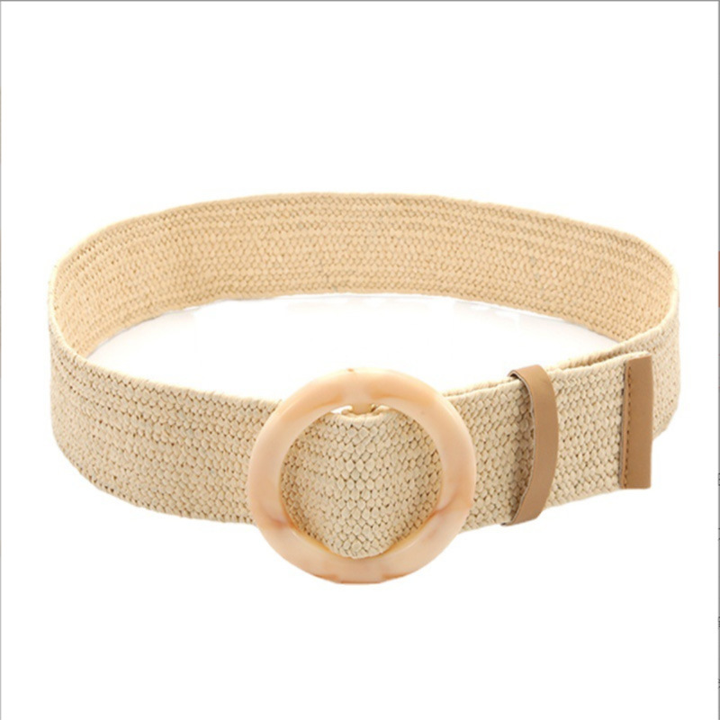 Ремень Плетеный женский, винтажный однотонный пояс из ПП, с круглой деревянной пряжкой, широкий эластичный из искусственной соломы, на лето