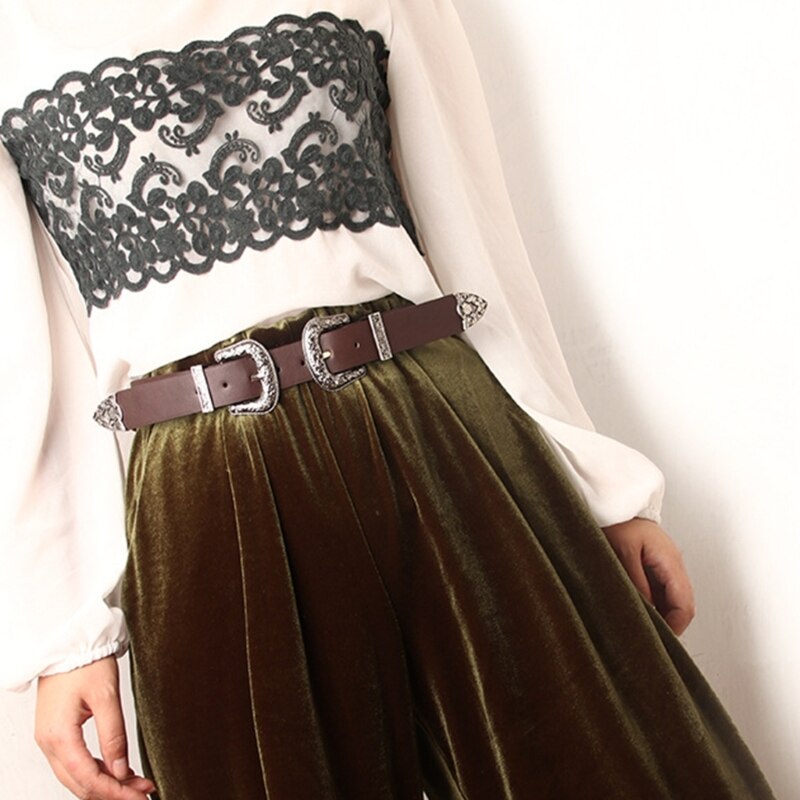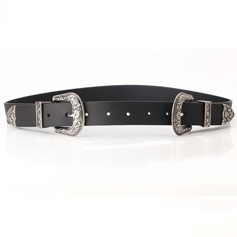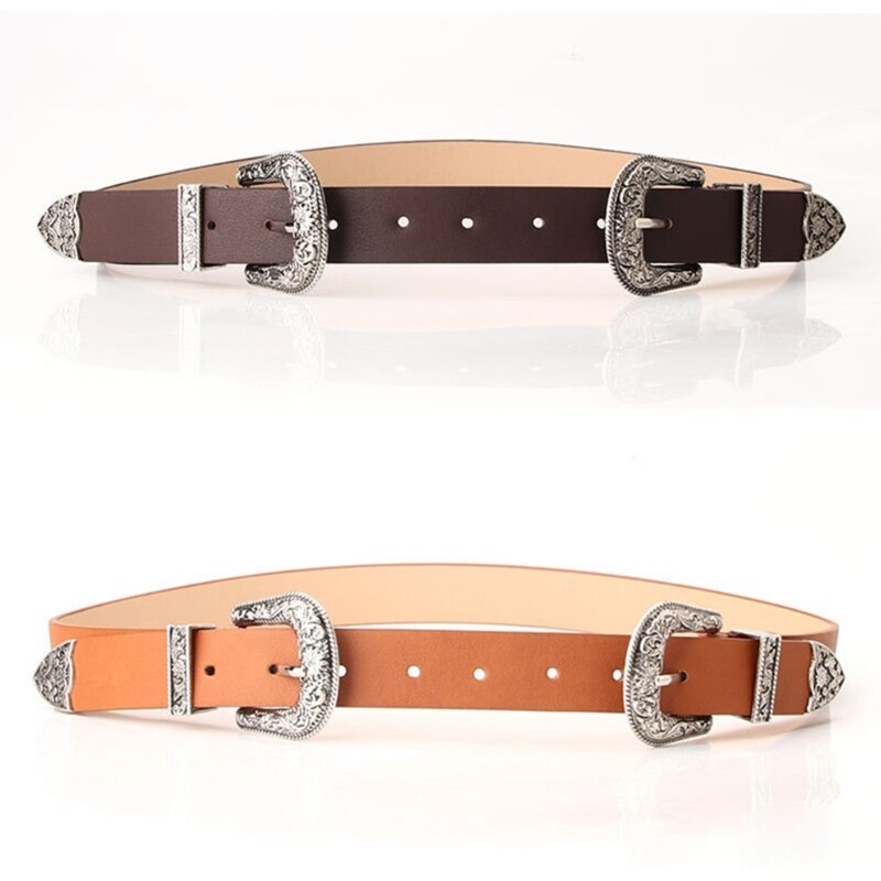 Ремень с двойной пряжкой в западном стиле, винтажный ремень в западном стиле, ковбойский ремень с пряжкой из коровьей кожи для мужчин, искусственная кожа