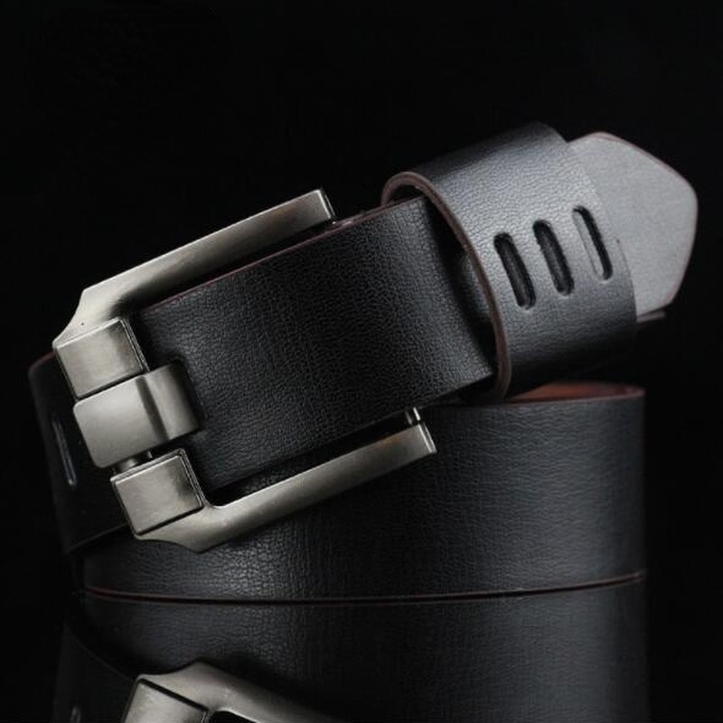 Ремень с классической пряжкой мужской, стильный Джинсовый пояс из кожи, Роскошный дизайнерский модный винтажный