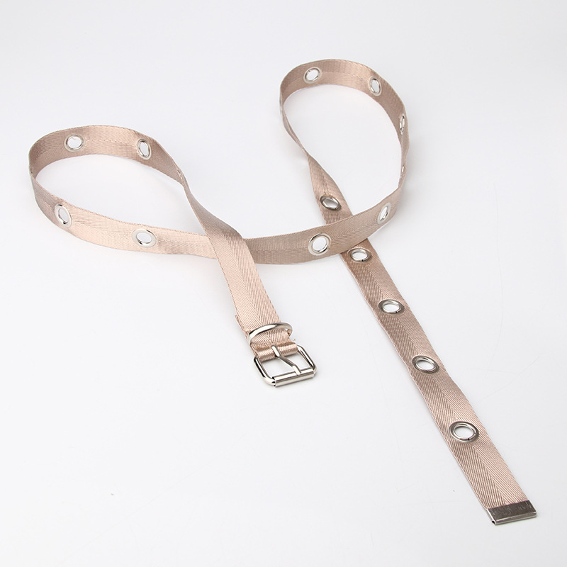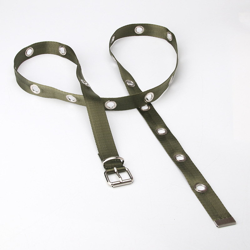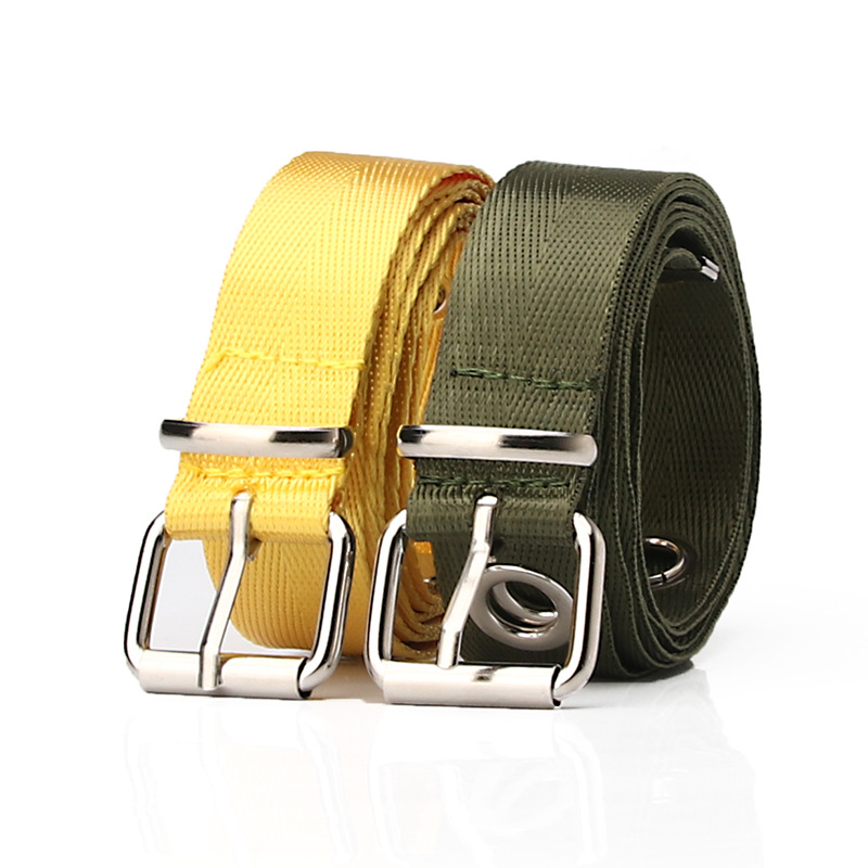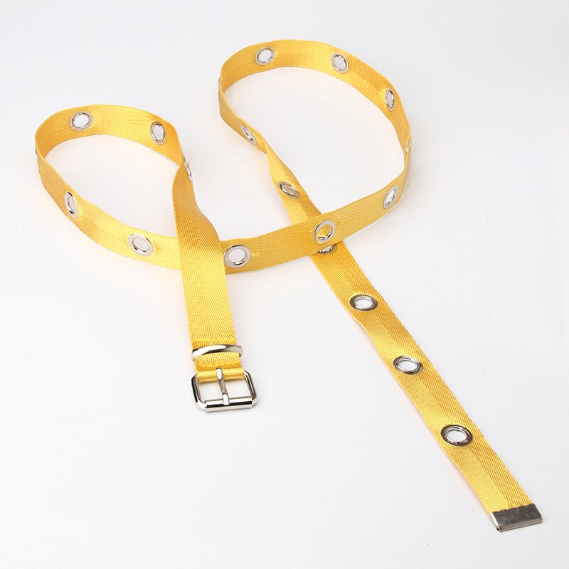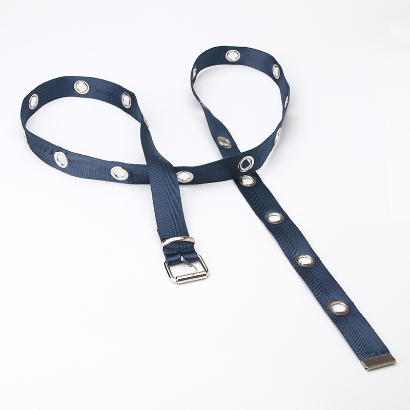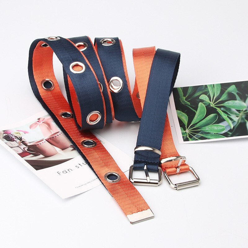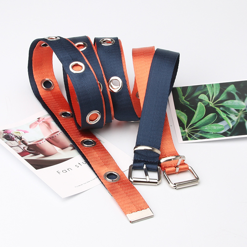 Ремень с металлической пряжкой в стиле унисекс, парусиновый ремень с отверстиями, Модный повседневный ковбойский пояс с пряжкой с язычком для брюк