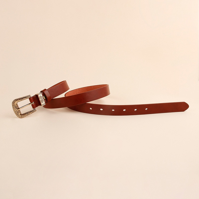 Ремень с металлической пряжкой Женский, Модный тонкий пояс из искусственной кожи в стиле ретро, чёрный/кофейный, для джинсов и платьев
