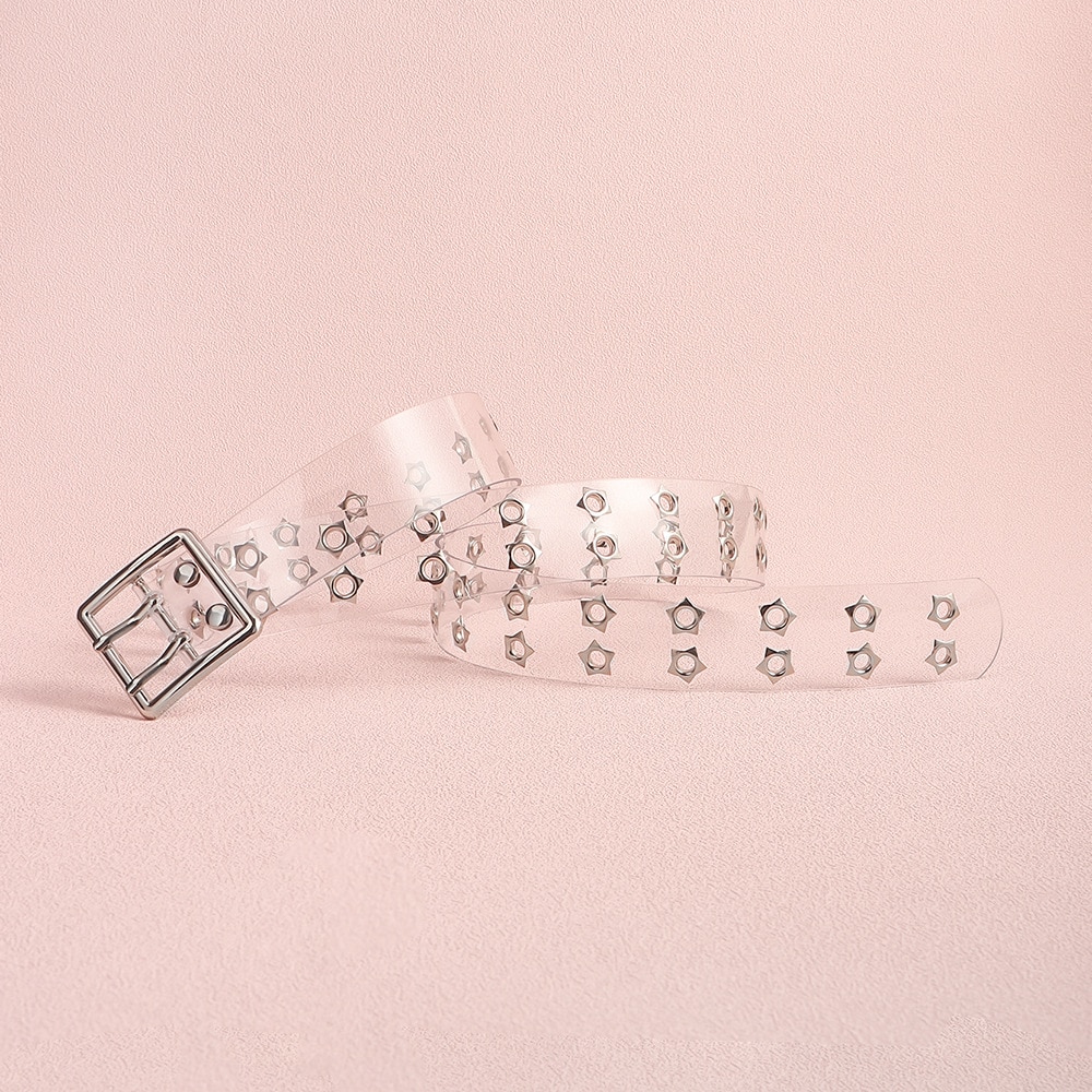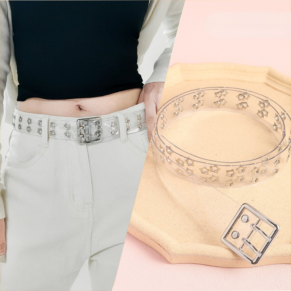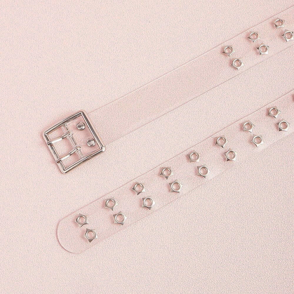 Ремень с заклепками Женский, прозрачный пояс в стиле панк, с Полным Кольцом, с заклепками, для джинсов, из пластика и поливинилхлорида