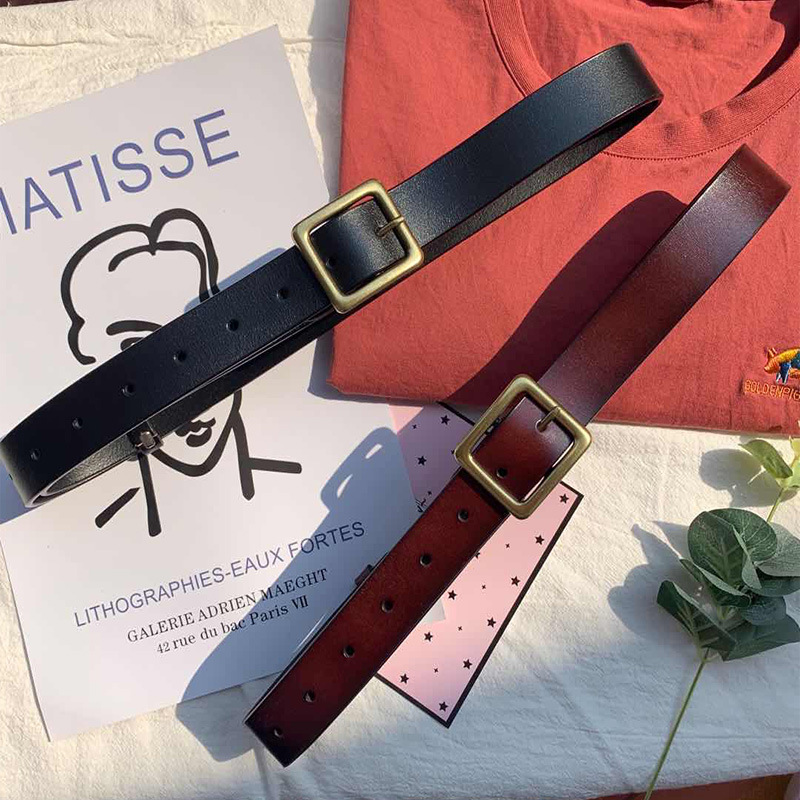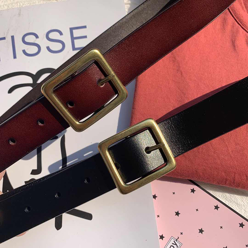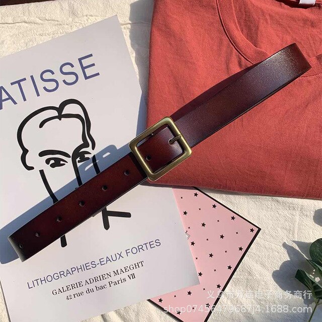Ремень в стиле ретро для женщин, Модный классический простой кожаный пояс с металлической круглой пряжкой, для отдыха, для платьев, джинсов
