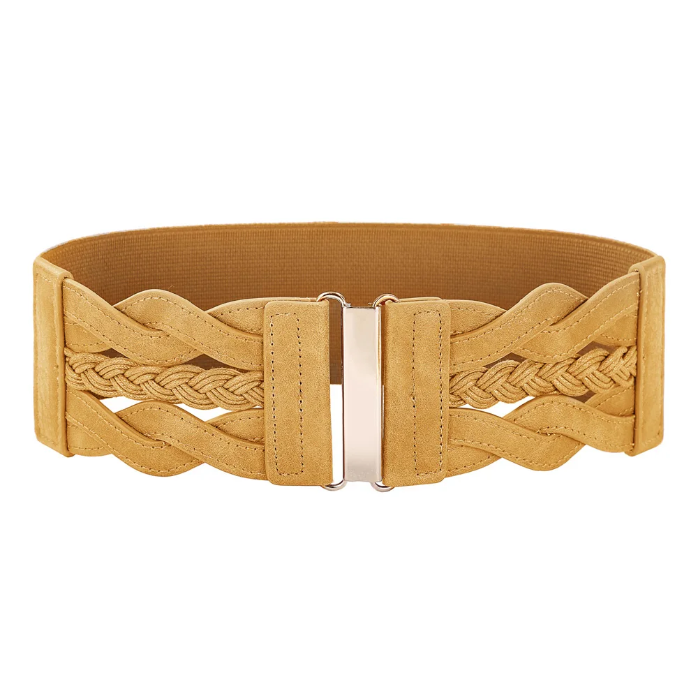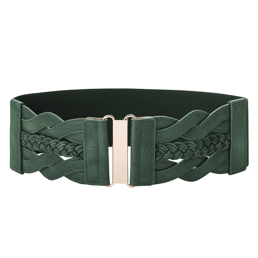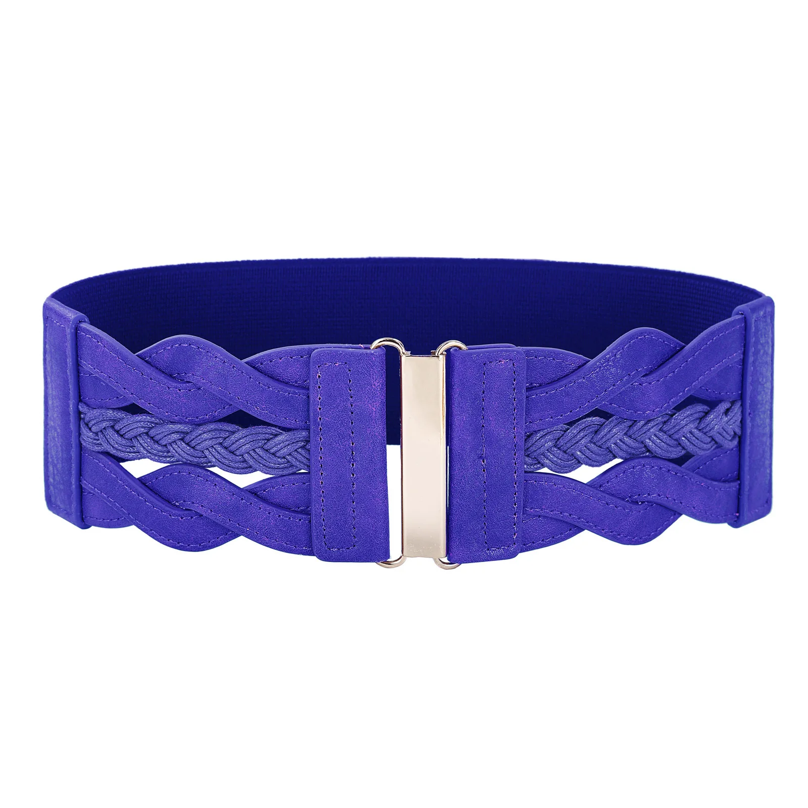 Ремень женский эластичный из полиуретановой кожи, широкий плетеный пояс с металлической пряжкой в стиле ретро/панк/готика для девушек, эластичный пояс 3 дюйма