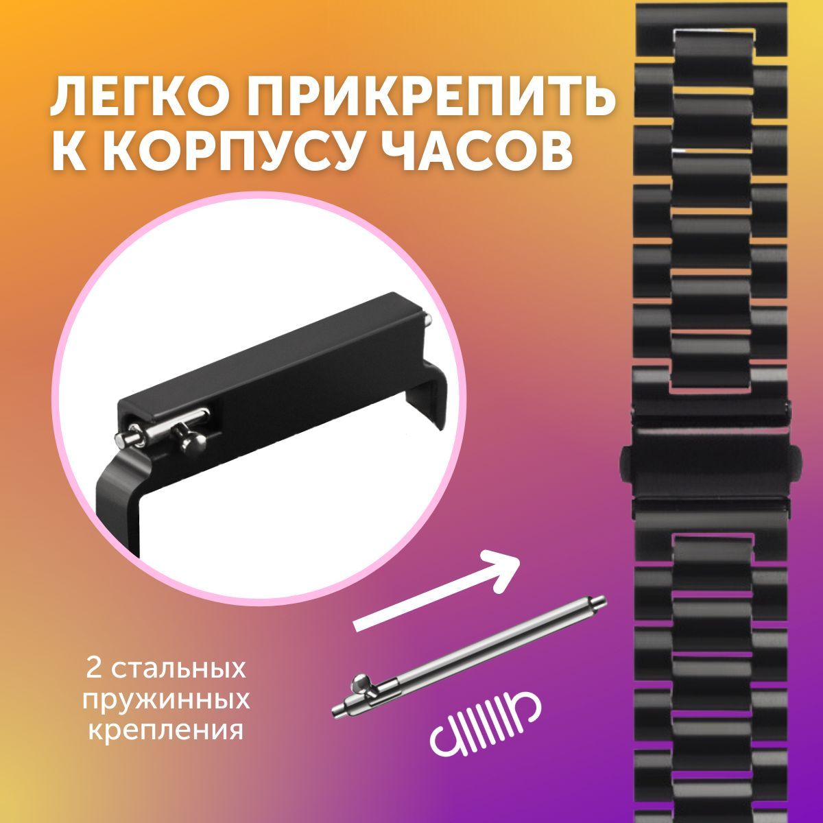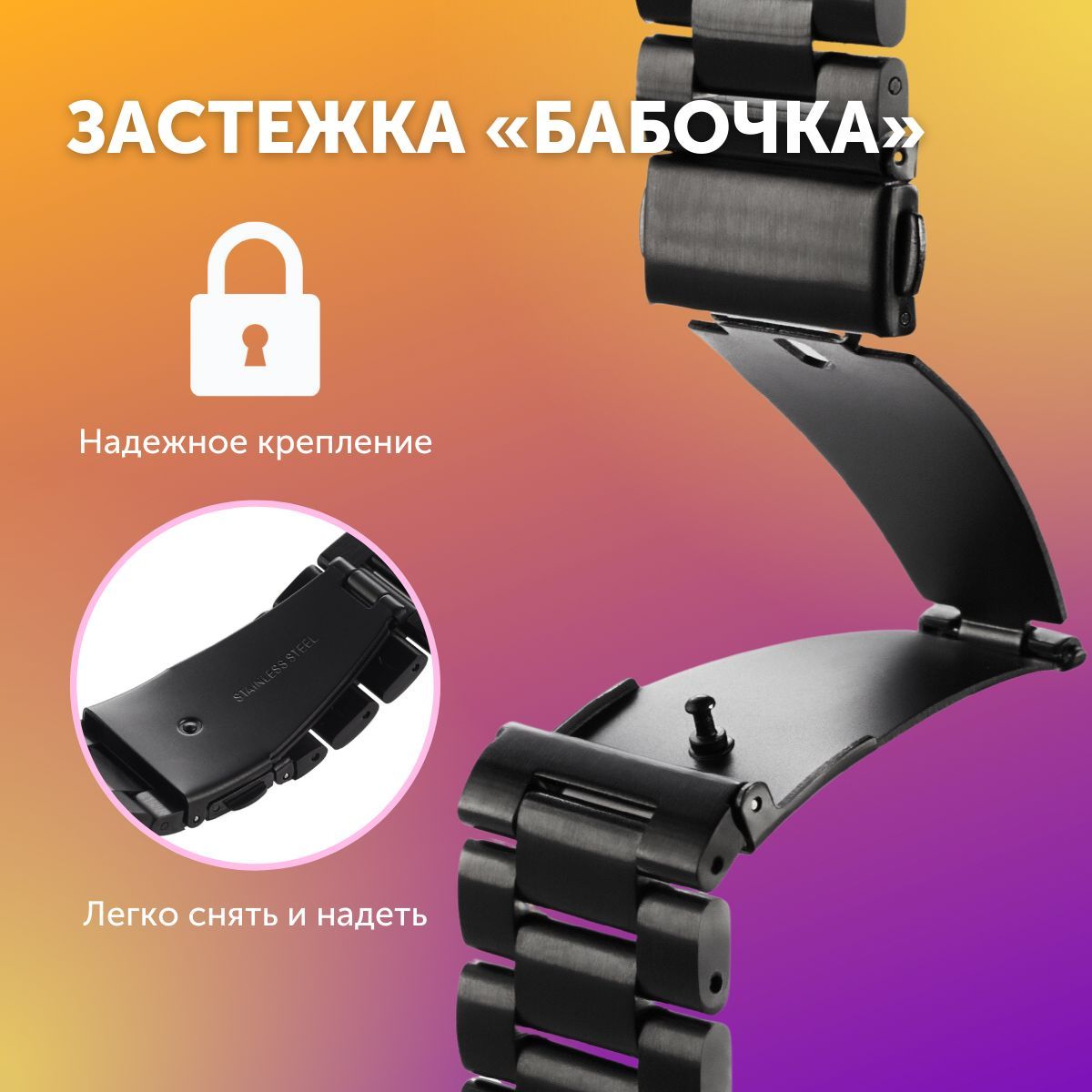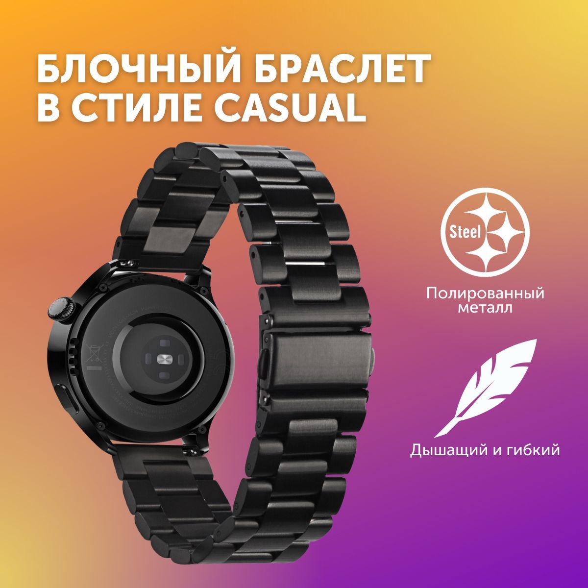 Описание: Блочный металлический браслет – это стильный и надежный аксессуар для фитнес-часов, исполненный из нержавеющей стали.Металлический блочный браслет для смарт-часов – нейтральный повседневный аксессуар, который легко впишется в любой стиль одежды – классический, спортивный и непринужденный кэжуал.Блочный браслет оснащен застежкой типа "бабочка", аккуратно складывающейся внутрь браслета. Она исключает случайное расстегивание, но позволяет при желании быстро снять часы.В качестве креплений к корпусу смарт-часов для блочного браслета используются пружинные стальные шпильки, которые легко вставить и вынуть самостоятельно.Съемные звенья обеспечивают шаг регулировки 8 мм.