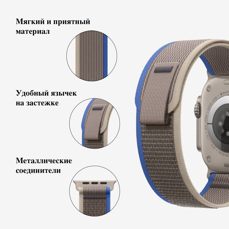 Ремешок Trail Loop cеро-синего цвета для Apple Watch 42mm, 44mm, 45mm, 49mm - 1 шт.