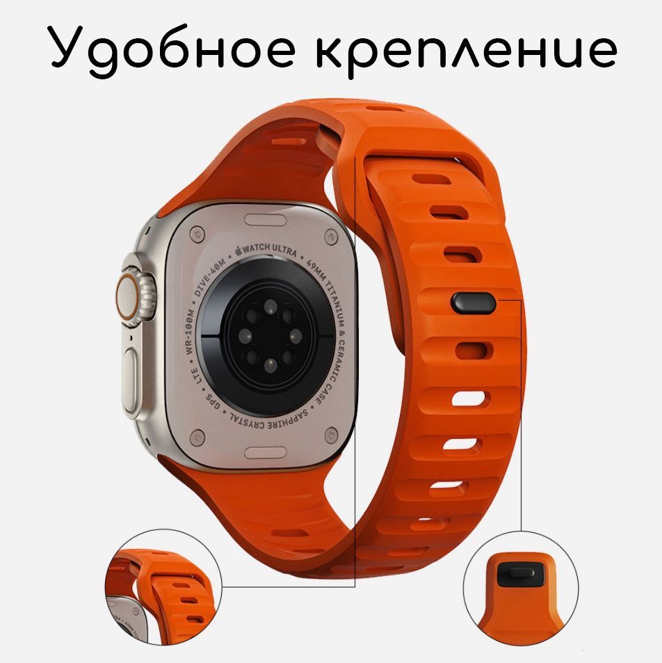 Ремешок для Apple Watch силиконовый 42 мм, 44 мм, 45 мм, 49 мм