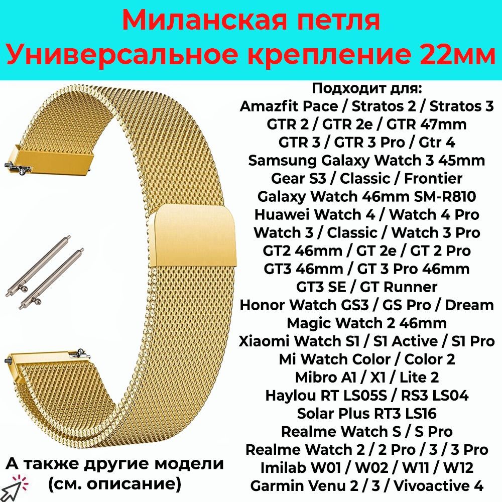 Ремешок для часов 22мм Металлический браслет 22 мм Миланская петля для смарт-часов Samsung Galaxy Watch , Gear S3 / Amazfit Pace , Stratos , GTR / Huawei Honor Watch / Xiaomi Haylou / Realme , 22mm