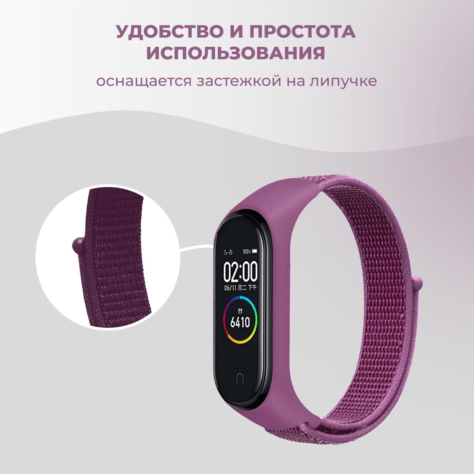 Ремешок Сяоми Ми Бенд прочно фиксируется на запястье и плотно держит гаджет на руке. Ремешок на липучке надёжный и стильный аксессуар для вашего гаджета.