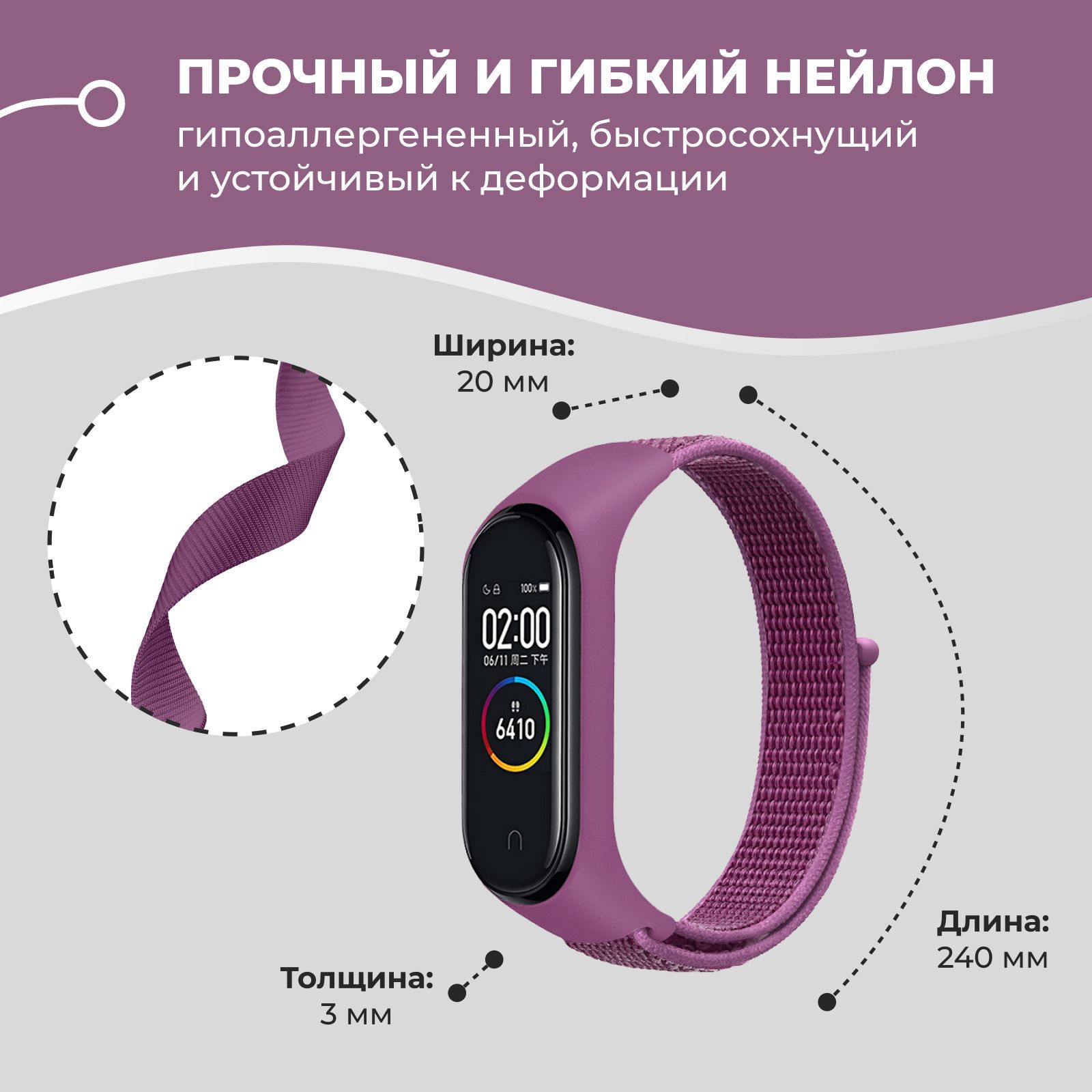 Описание: Нейлоновый ремешок для фитнес-браслета отличный вариант для вашего гаджета. Спортивный ремешок для умных часов благодаря лёгкости и гибкости удобно носить в течении всего дня.Тканевый ремешок для смарт часовпри необходимости легко можно почистить от загрязнений используя обычное мыло и воду. СтильСменный браслет мужской и женский отлично подходит под любую одежду, что сделает ваш образ более стильным. ПрактичностьСменный браслет мужской и женский отлично подходит под любую одежду, что сделает ваш образ более стильным. Подходит дляXiaomi Mi Band 3, 4, 5 , 6 и 7.