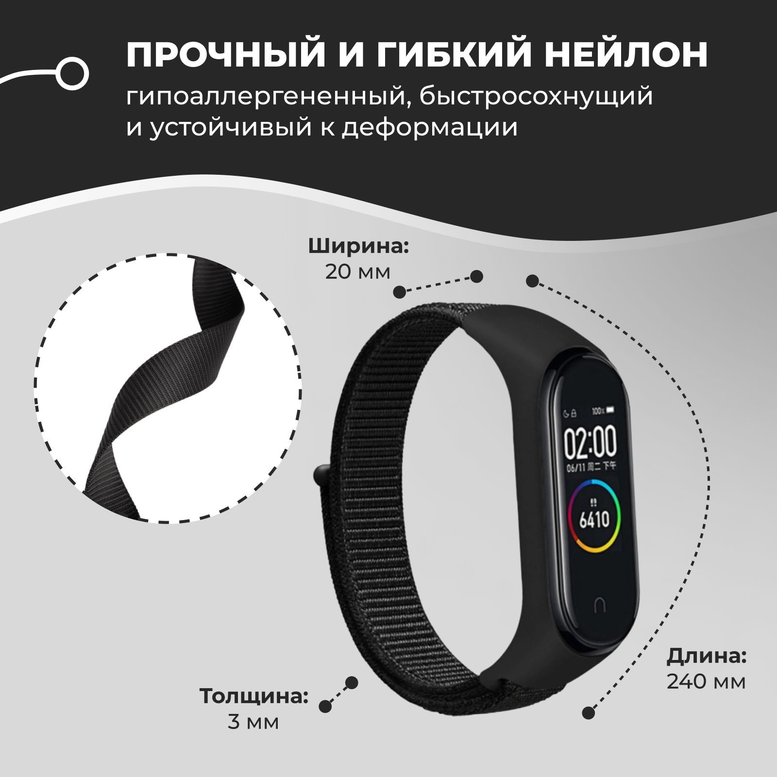 Описание: Текстовое описание изображенияТканевый спортивный браслет для умных (смарт) часов Сяоми Ми Бэнд 3/4/5/6/7Нейлоновый ремешок для фитнес-браслета отличный вариант для вашего гаджета. Подходит для Xiaomi Mi Band 3, 4, 5, 6 и 7.Текст при отключенной в браузере загрузке изображенийНадежностьСпортивный ремешок для умных часов, благодаря лёгкости и гибкости удобно носить в течении всего дня.