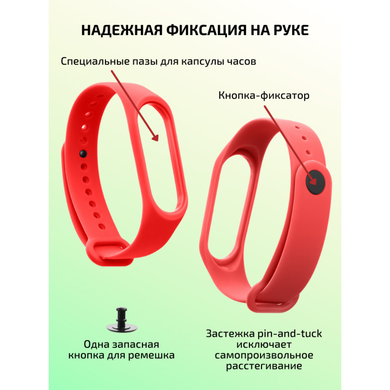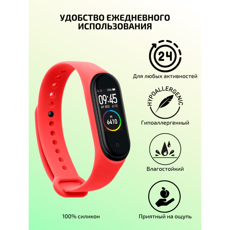 Описание: Ремешок для Xiaomi Mi Band 3 / Mi Band 4 - лучший выбор для повседневной жизни и занятий спортом!Ремешок для Xiaomi Mi Band 3 / Mi Band 4 - лучший выбор для повседневной жизни и занятий спортом! Мягкость и гипоаллергенность силиконового ремешка делают комфортным его круглосуточное ношение.Вставьте капсулу Mi Band в гнездо и наслаждайтесь спортивными занятиями любой интенсивности.Классический спортивный браслет Cavolo для Mi Band полностью повторяет форму и функционал ремешка, выбранные для инновационного фитнес-браслета Mi производителем.Каждый ремешок Cavolo снабжен запасной кнопкой застежки, которую легко установить самостоятельно.Силиконовый ремешок выдерживает нагрузку на растяжение свыше 6 кг. Застежка pin-and-tuck исключает самопроизвольное расстегивание.Ремешок Cavolo весит всего 9 граммов, но обеспечивает надежную фиксацию на руке часов Xiaomi Ми Бенд 3 и 4 серий.Силиконовый ремешок для Mi Band 3/4 – универсален, и, благодаря широкой палитре цветов подойдет к самым разным образам.