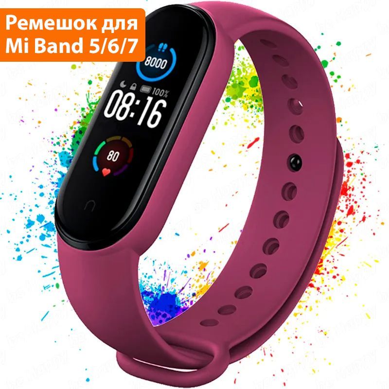 Ремешок для фитнес-браслета Xiaomi Mi Band 5 / 6 / 7 / бургунди