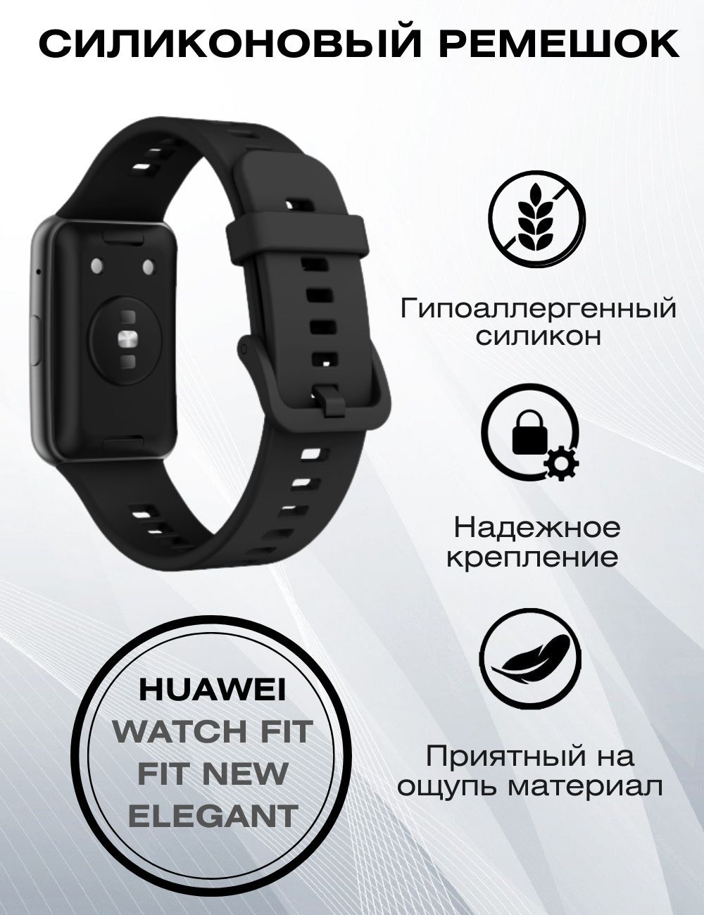 Описание: Ремешок для умного браслета Huawei Watch Fit сделан из гипоаллергенного силикона.Это очень прочный и гибкий материал, который не боится жары, мороза и отлично держит форму.