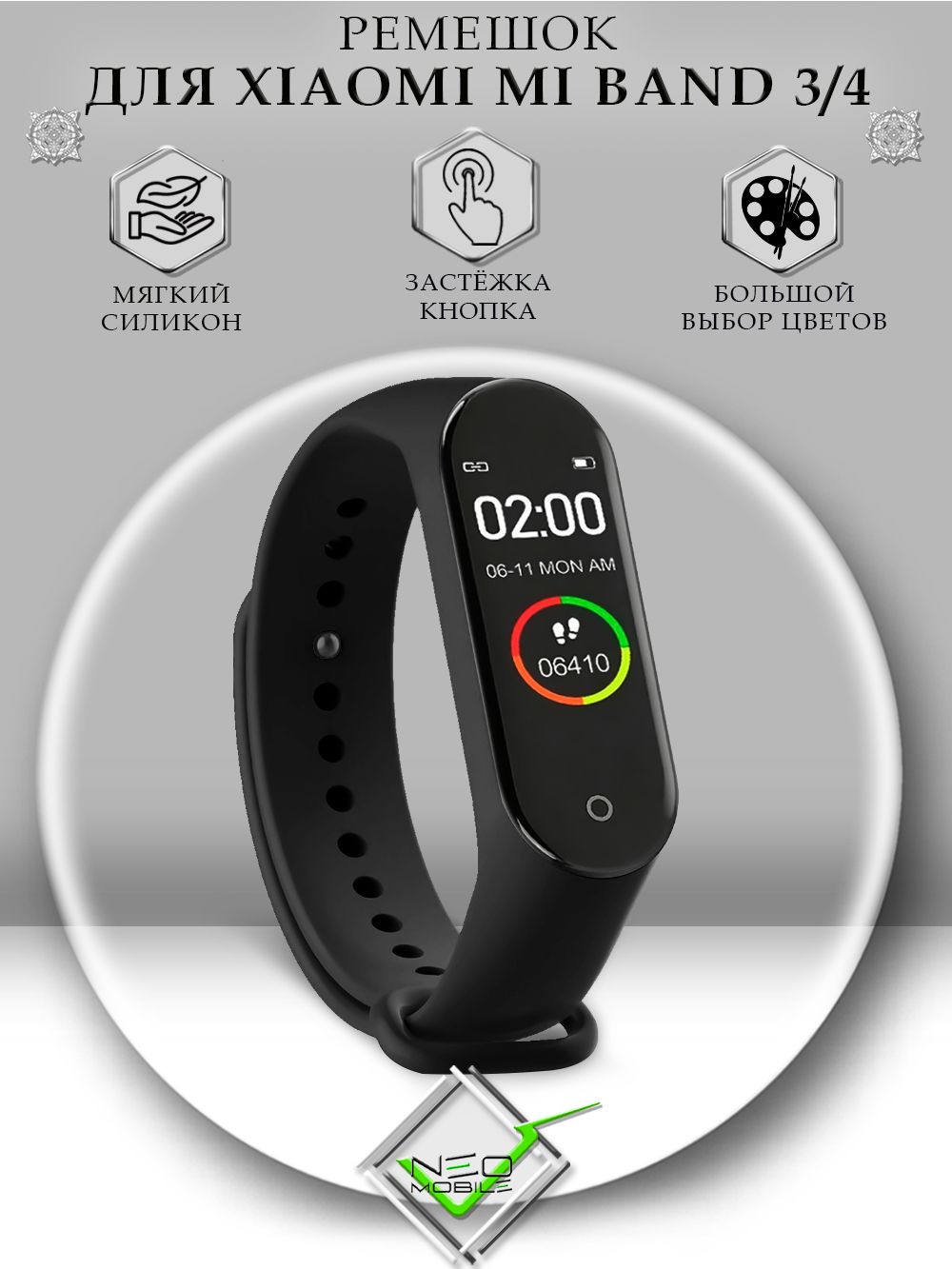 Описание: Ремешок для часов Xiaomi Mi Band 3 и Mi Band 4 выполнен из качественного, эластичного и гипоаллергенного силикона. Ремешок аккуратно смотрится на руке и не причиняет дискомфорт при длительном ношении. Надежно крепится не только на узком запястье, но и на широком. Капсула часов надежно фиксируется.