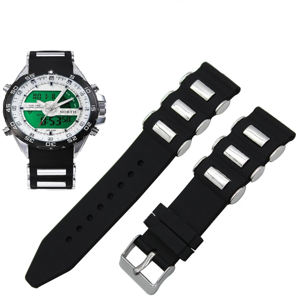 Универсальный ремешок для часов Ремешок для часов шириной 20 мм 22 мм 24 мм черный силиконовый каучук Нержавеющая Пряжка ремень браслет ремешок