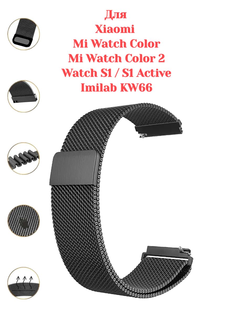 Ремешок для смарт-часов Xiaomi Watch S1 / S1 Active / MI Watch Color 2 / MI Watch Color / Imilab KW66 шириной 22 мм ( миланская петля 22мм ) черный