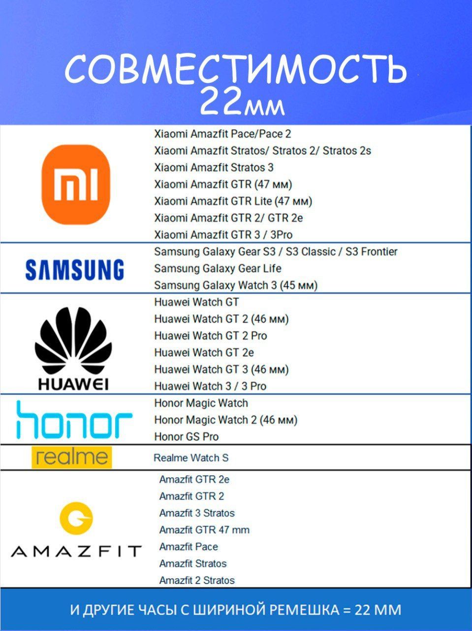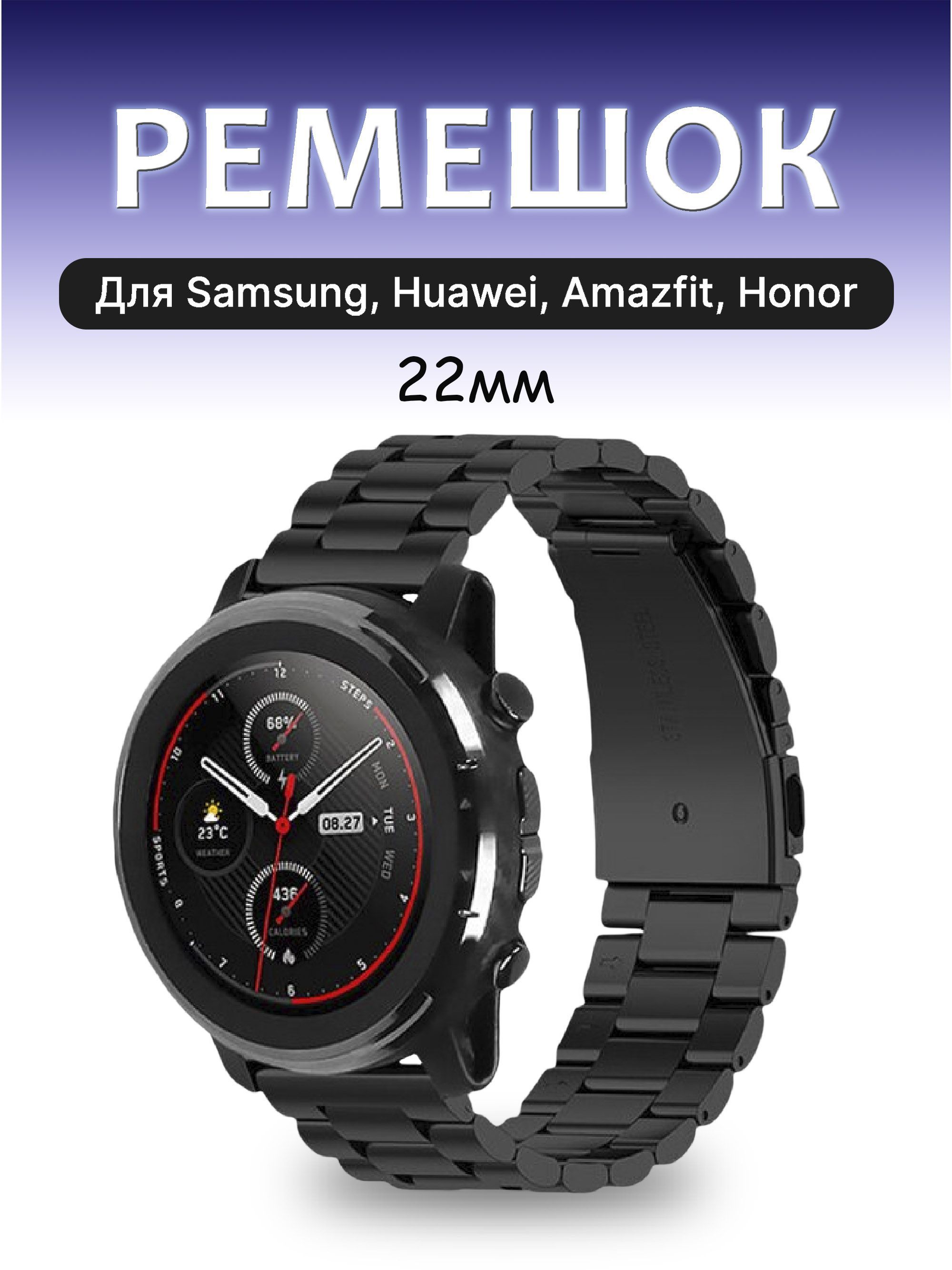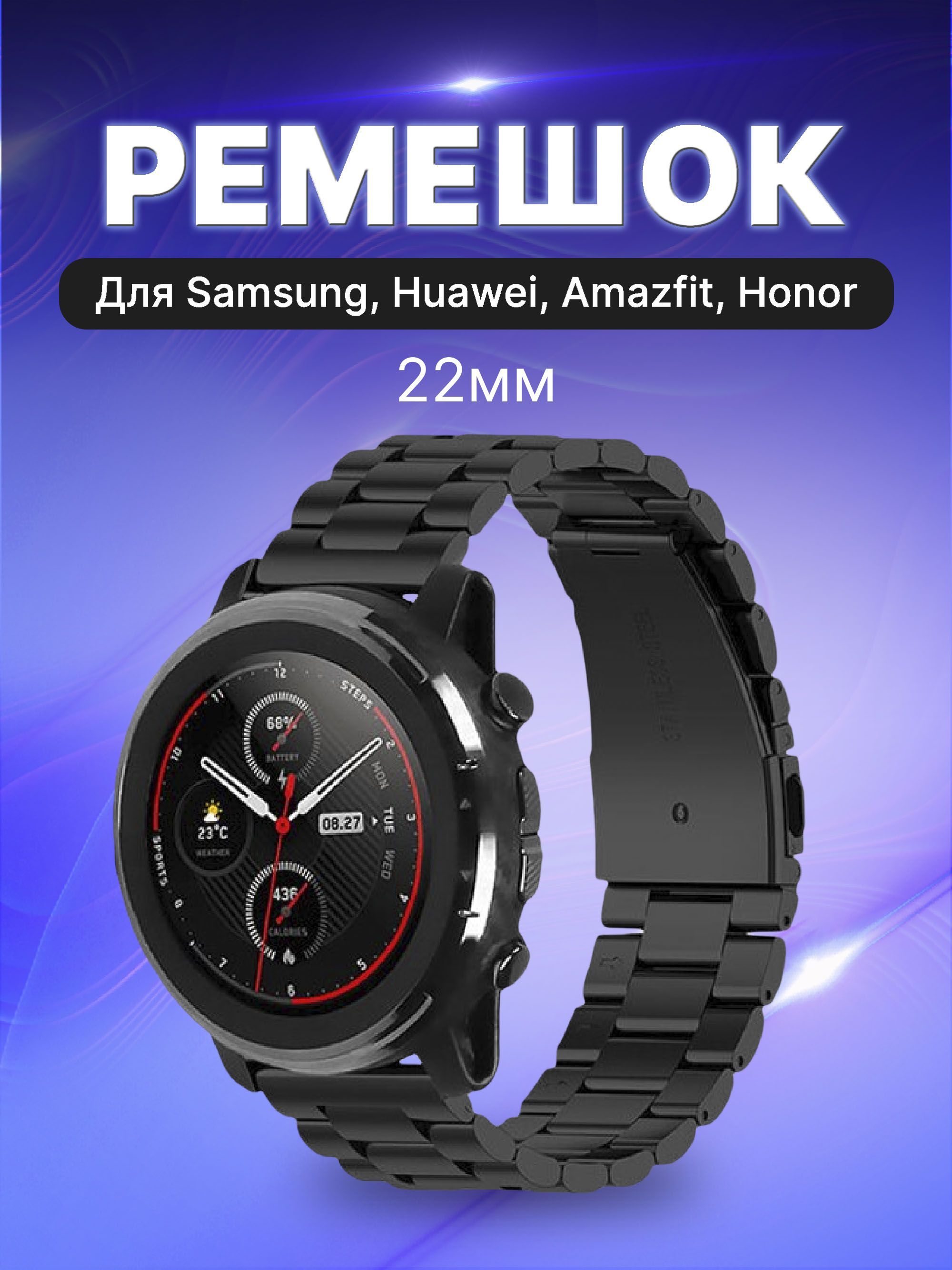 Описание:   УНИВЕРСАЛЬНЫЙ РЕМЕШОК 22 ммЧерный матовый ремешок для наручных часов Samsung, Huawei, Amazfit, Honor и других моделей шириной 22мм.