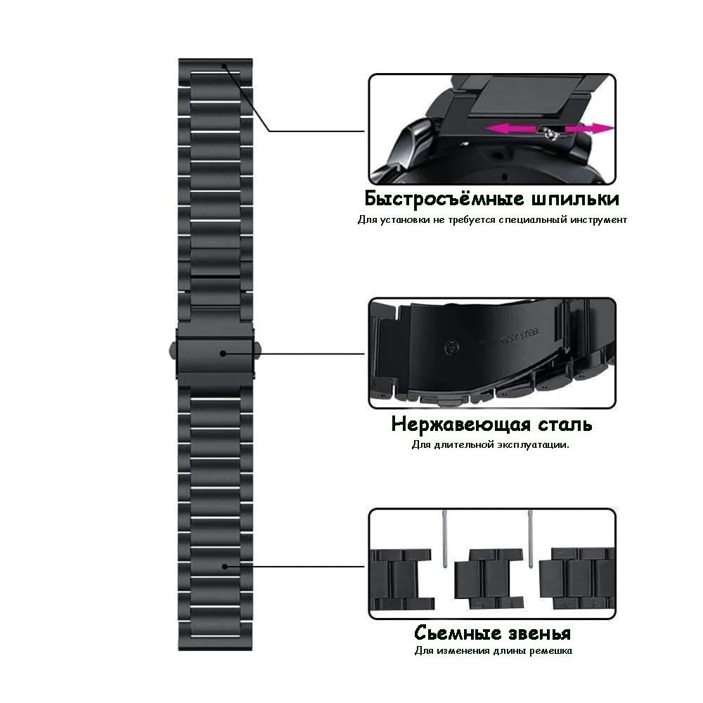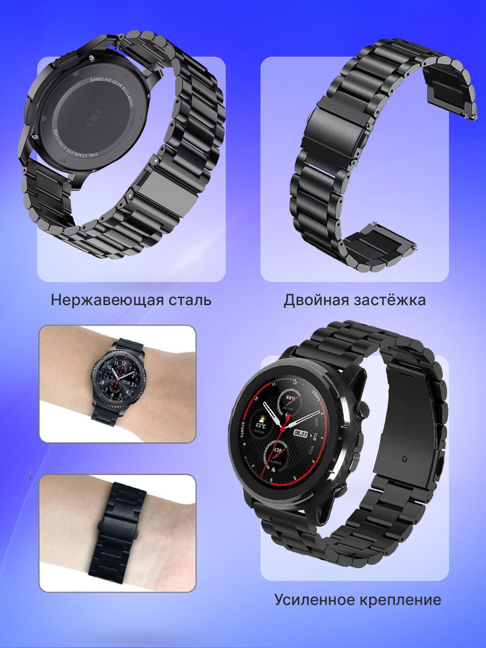 Ремешок для умных часов 22 мм металлический/Блочный браслет универсальный для смарт-часов Samsung Galaxy Watch, Gear S3 / Amazfit, Huawei Honor Watch / Xiaomi Haylou / Realme 22mm и других, черный