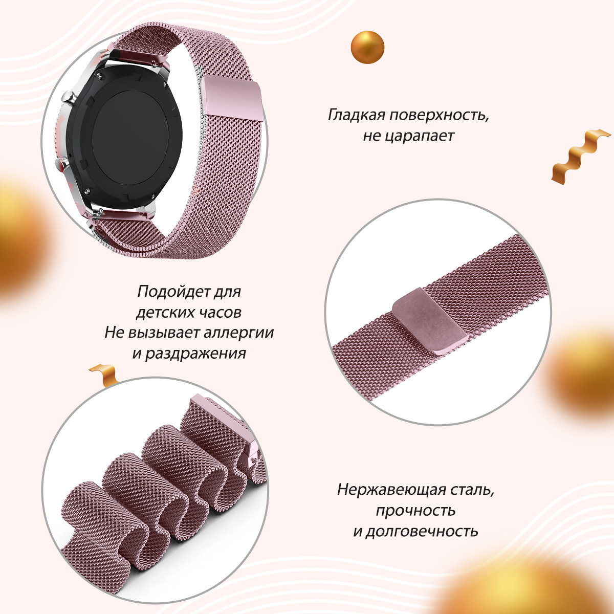- Материал ремешка не вызывает аллергических реакций и раздражения на кожеТекст при отключенной в браузере загрузке изображений- Стильный ремешок будет сочетаться с любым образом