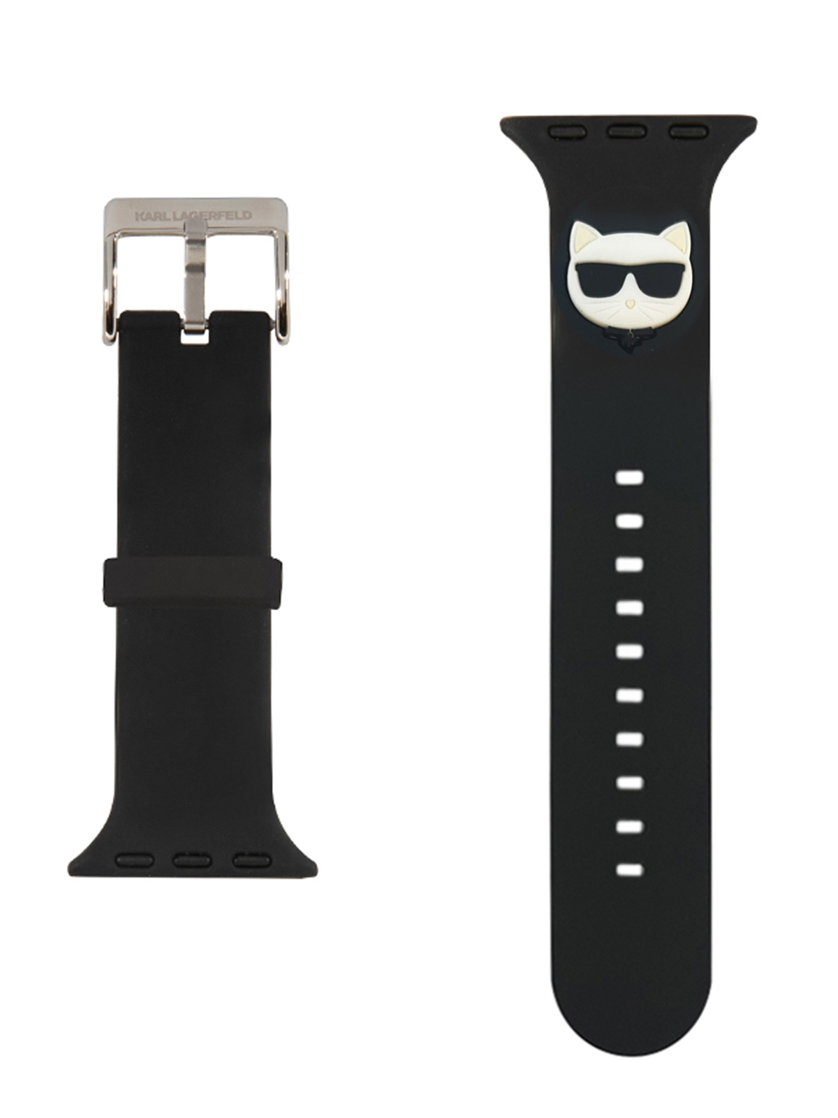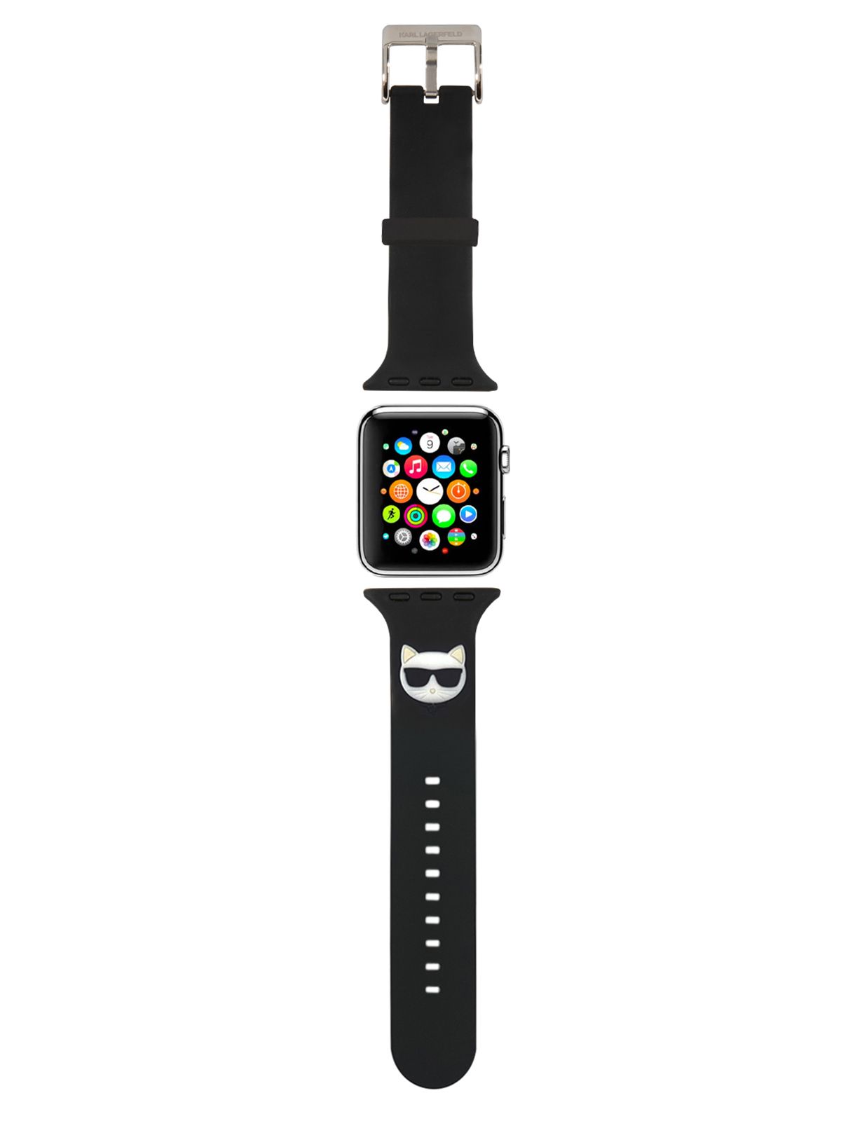Ремешок Karl Lagerfeld для смарт часов Apple Watch 45 44 42 mm на Эпл Вотч серии 3, 4, 5, 6, 7 и SE, силиконовый, Choupette head, черный
