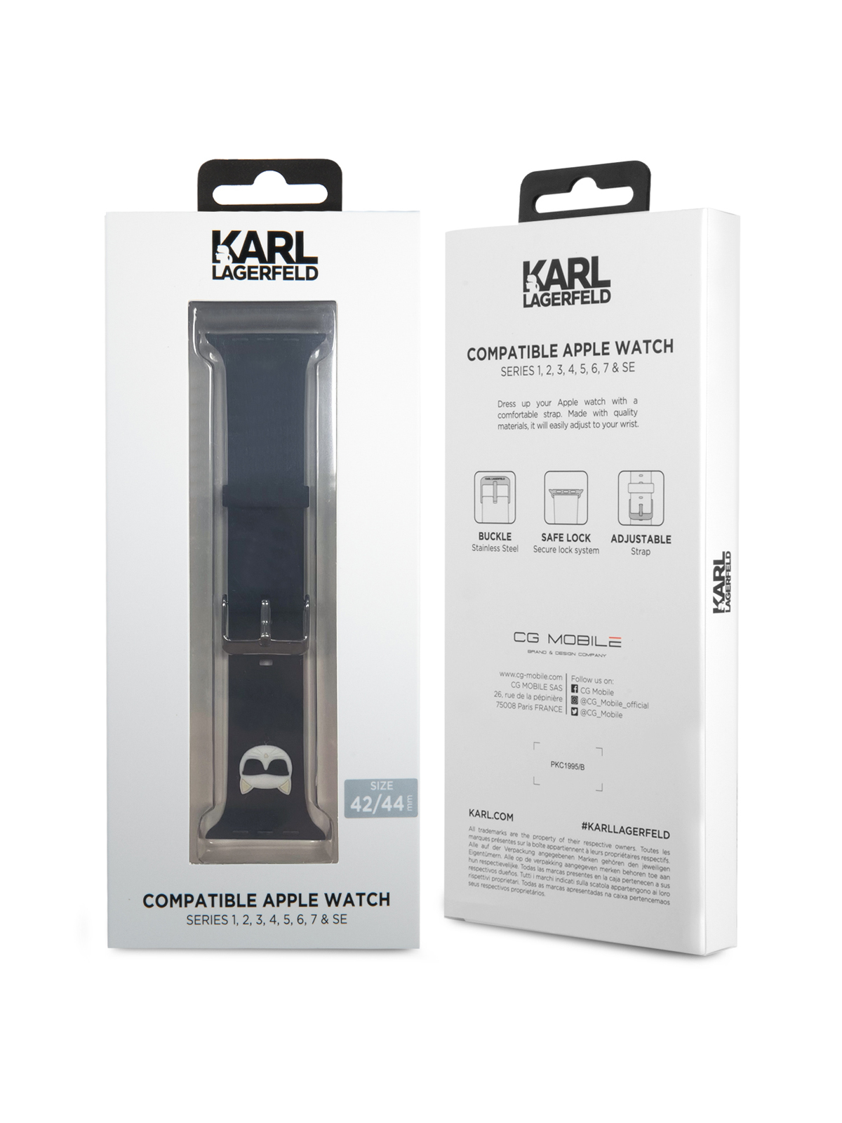 Описание: Силиконовый ремешок для смарт часов Apple с фирменной рельефной фигуркой бренда Karl Lagerfeld. Изделие можно носить с любым корпусом Apple Watch series 3, 4, 5, 6, 7 и SE, который имеет диаметр циферблата 45 / 44 / 42 мм. Аксессуар изготовлен из прочного качественного силикона, гарантирующего долгий срок службы и комфортное использование.