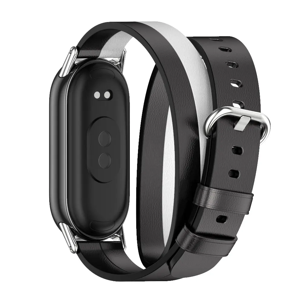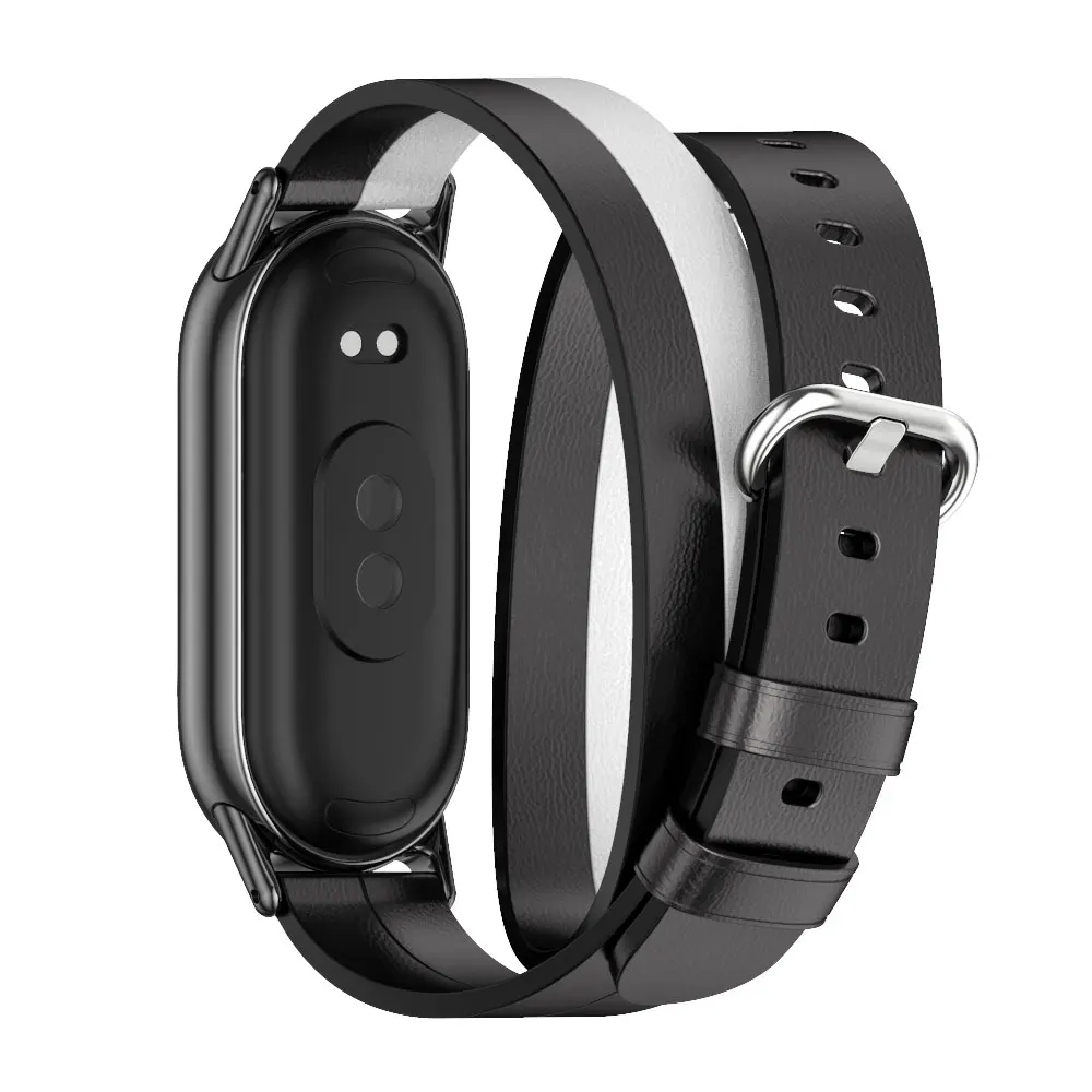 Ремешок кожаный для Xiaomi Mi Band 8, браслет с двойной петлей для смарт-часов Xiaomi Mi Band 7 Correa Mi Band 6 5 4 3, сменный Браслет
