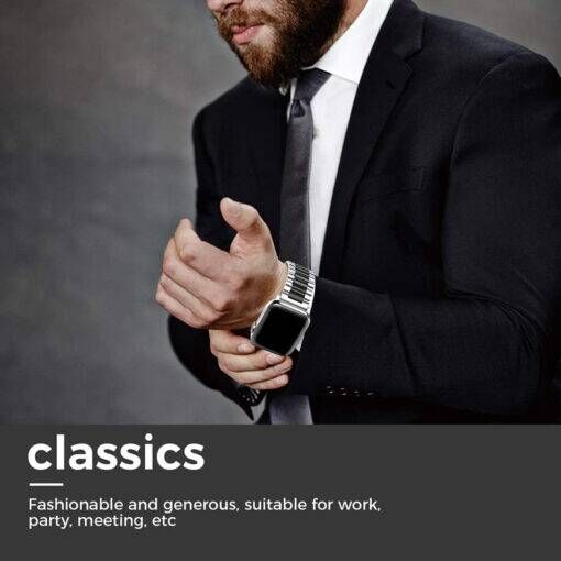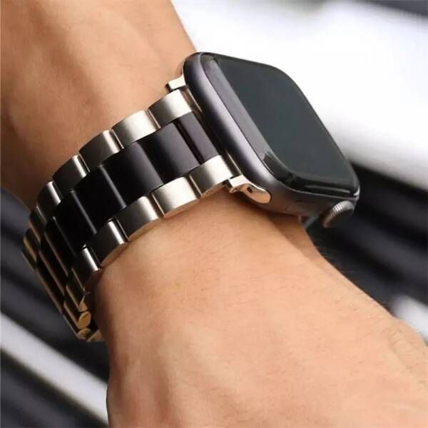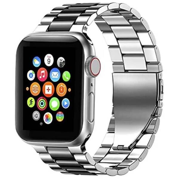 Описание: В жизни человека самое драгоценное - время. Для того чтобы следить за временем и не пропустить ничего важного, Вам просто необходимы наручные часы. А для того что бы часы надежно держались на руке мы предлагаем надежный и стильный ремешок для умных часов. Ремешок для часов apple watch блочный выполнен из прочной нержавеющей стали, благодаря чему прослужит долго и не поменяет цвет при намокании. Ремешок для часов apple watch не вызывает аллергию и не цепляется за одежду, а расположенные особым образом звенья позволяют дышать коже. Стильный металлический (стальной) ремешок для смарт часов Apple Watch (Эппл Вотч) 42/44/45/49 мм легко устанавливается на Ваш гаджет, благодаря уникальному механизму крепления «в один клик». Оснащен застежкой типа "бабочка", аккуратно складывающейся внутри браслета.
