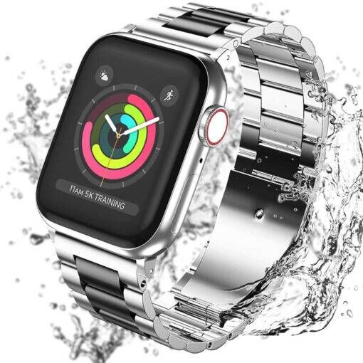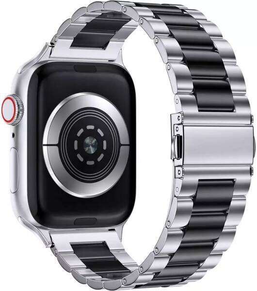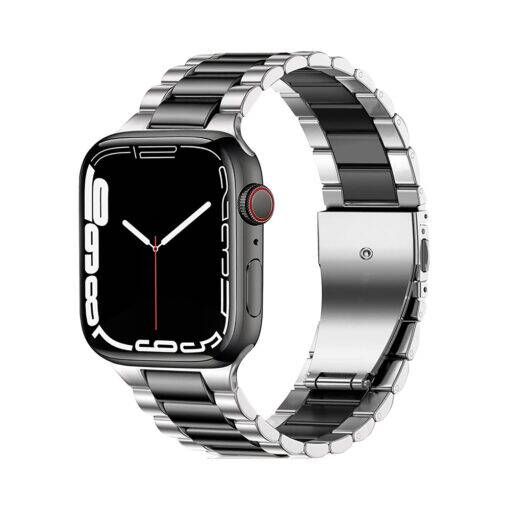 Ремешок металлический для умных смарт часов Apple Watch 42 / 44 / 45 /49 mm / браслет блочный из нержавеющей стали для умных часов Apple Watch series 1-7 SE series, Серебристый/Черный Эппл Вотч
