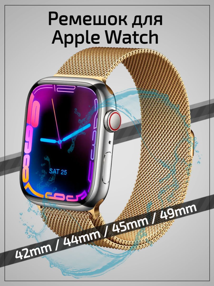 Ремешок миланская петля для Apple Watch 42мм / 44мм / 45мм / 49мм металлический на магните золотой