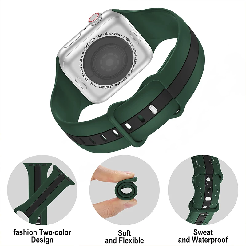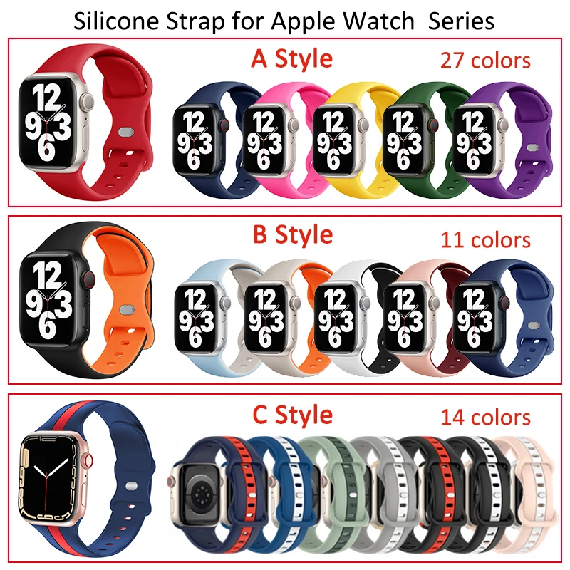 Силиконовый ремешок для Apple Watch Band 45 мм 44 мм 42 мм 41 мм 40 мм 38 мм