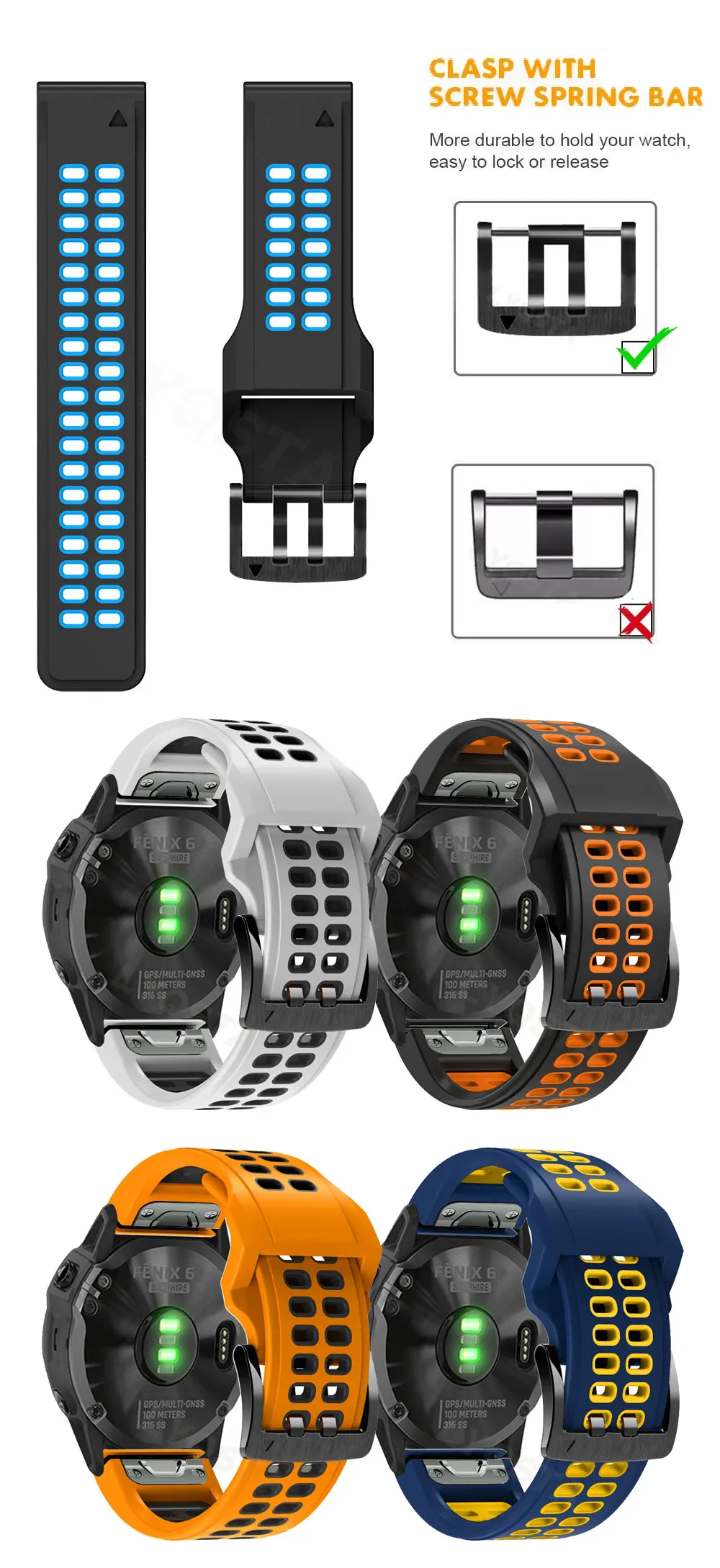 26mm Used for For Garmin Fenix 6X 6X Pro