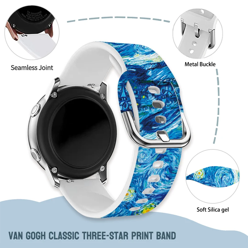 Ремешок с принтом Ван Гога 20 мм 22 мм для часов Samsung Galaxy 5/4 40 мм 44 мм 4Classice 42 мм 46 мм Сменный браслет с силиконовым ремешком