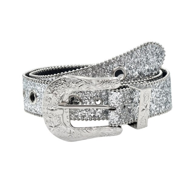 Качественный Материал: Этот ремень с пайетками изготовлен из высококачественной искусственной кожи, материал и определенный процесс делают любое изделие надежным, удобным и долговечным.