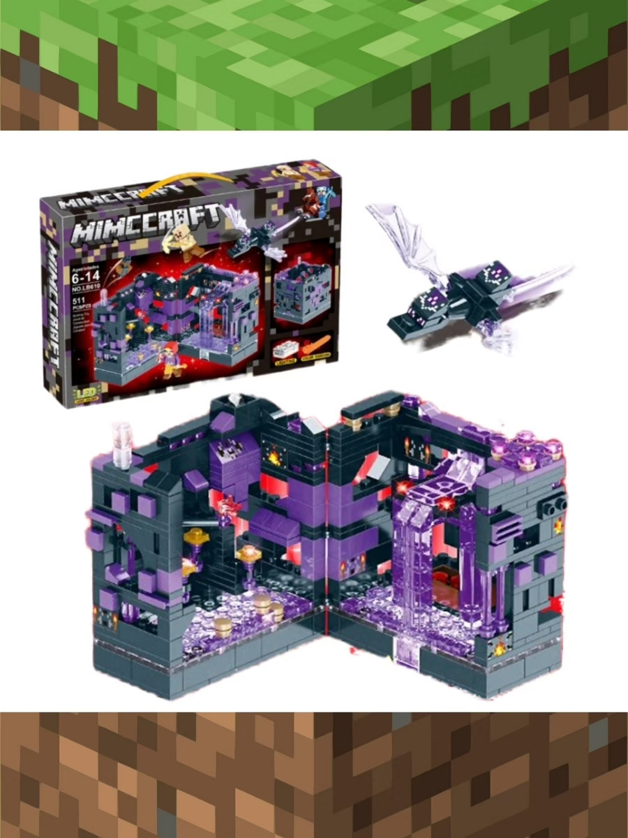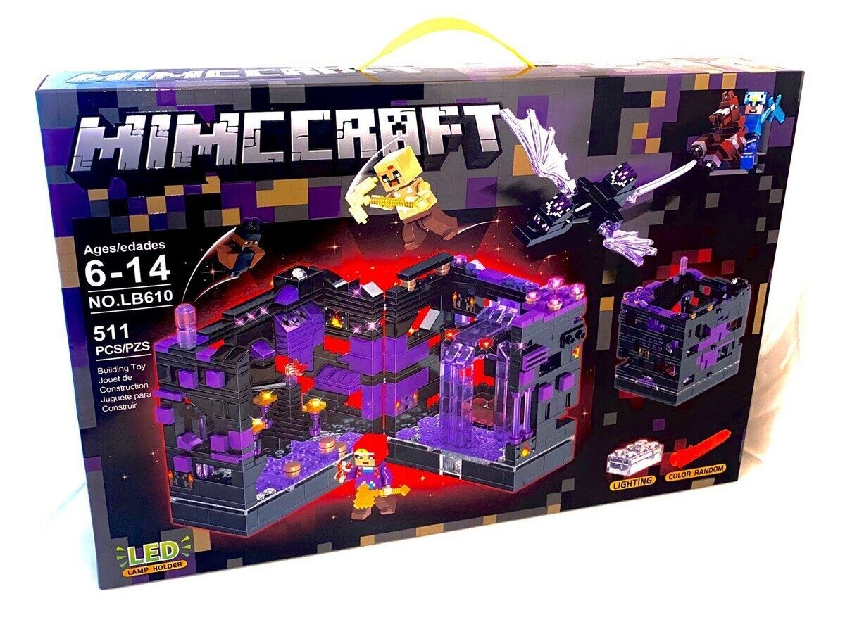 RENZAIMA minecraft / Конструктор для мальчика Майнкрафт "Подземная крепость" 511 деталей с LED-подсветкой / Игровой набор Minecraft + фигурки