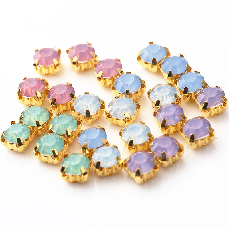 RESEN 6 мм смешанные цвета опала Смола пришить стразы с золотым когтем розовый/синий/зеленый/белый опал шитье Стразы DIY платье