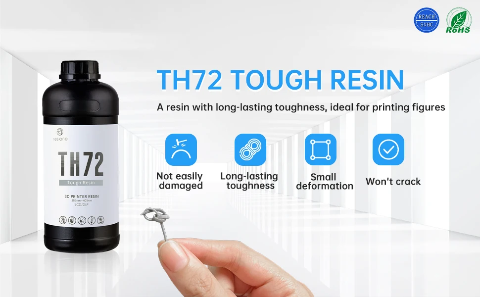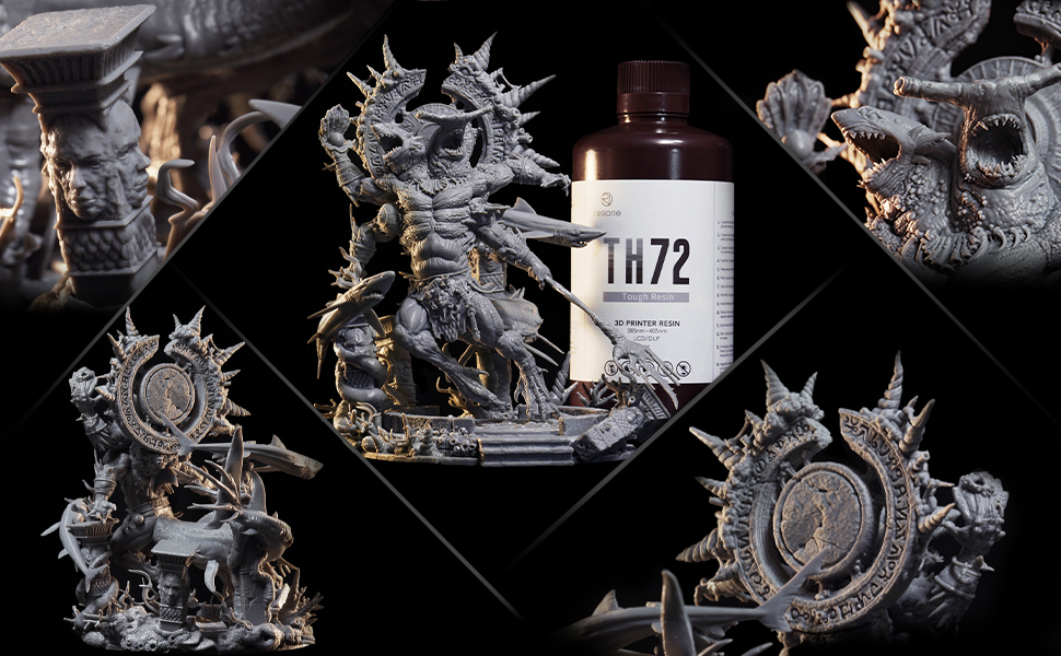 TH72-это смола с длительной прочностью. Не будьте слишком осторожны, когда играете с принтом TH72, так как он не будет легко поврежден, и он не будет сильно сжиматься и деформироваться в течение длительных периодов времени. Идеально подходит для печати фигурок.