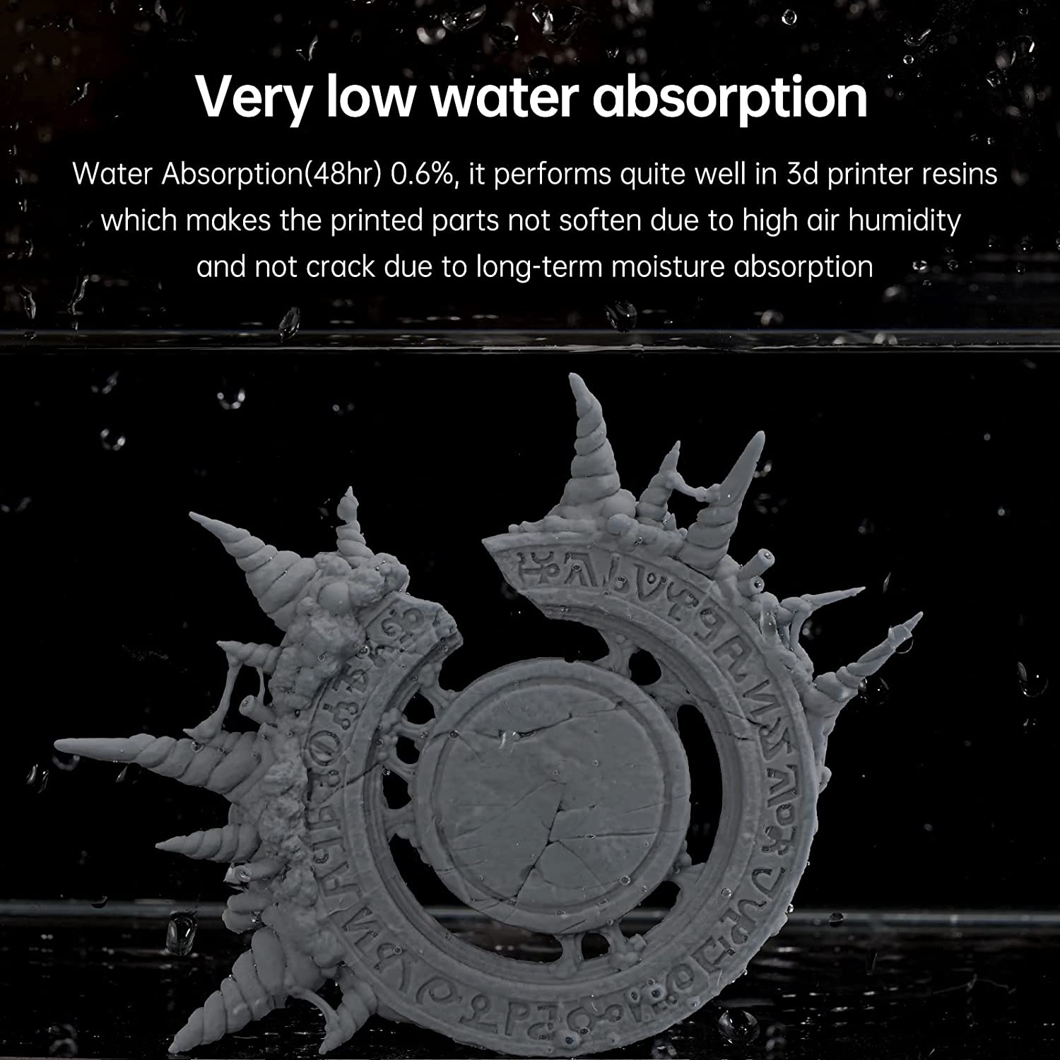 • Очень абсорбция отлива: Абсорбция воды (48хр) 0,6%, она выполняет довольно хорошо в смолаах принтера 3Д, благодаря чему печатные детали не размягчаются из-за высокой влажности воздуха и не трескаются из-за длительного впитывания влаги.