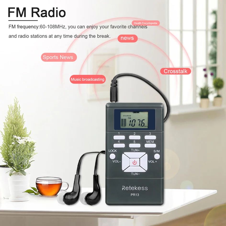 RETEKESS 10 шт. PR13 радио FM стерео DSP портативный Радиоприемник цифровые часы для руководства церковной конференции обучения