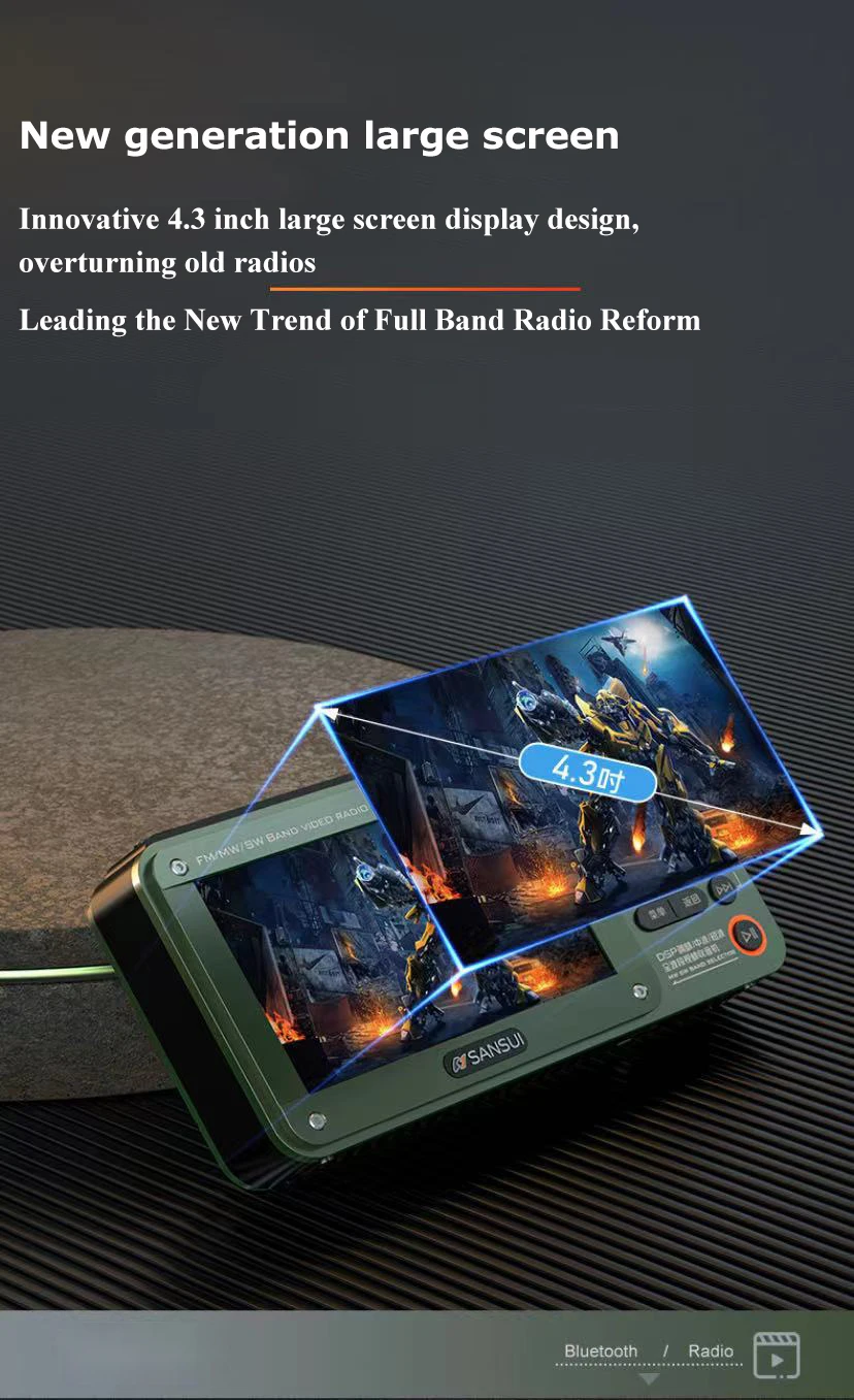 Ретро FM/MW/SW радио приемник 4,3-дюймовый экран видео музыкальный плеер беспроводной Bluetooth динамик поддержка TF карта USB
