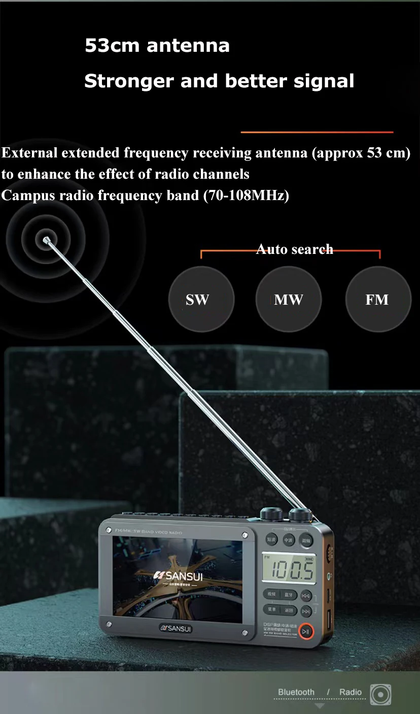 2. Вращающийся на 360 градусов Рычаг 53 см антенна, FM, AM, SW все диапазоны высокочувствительного радио, автоматическое радио, FM-радио поддерживает вещание в кампусе.