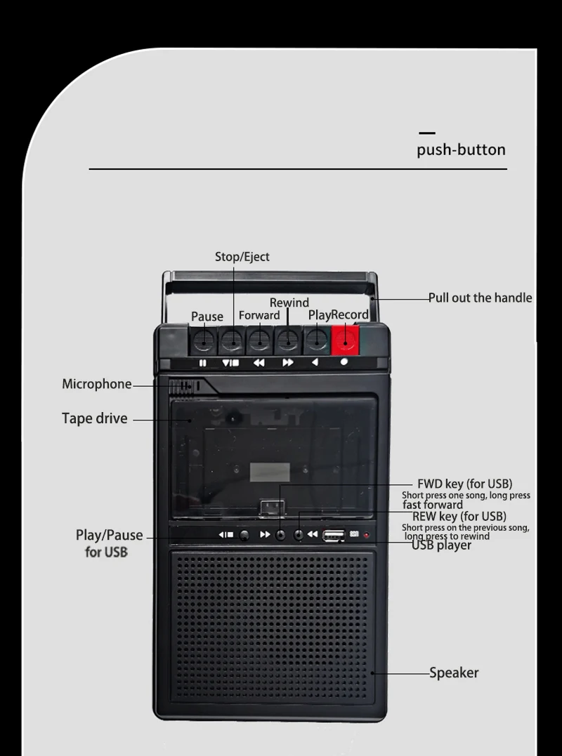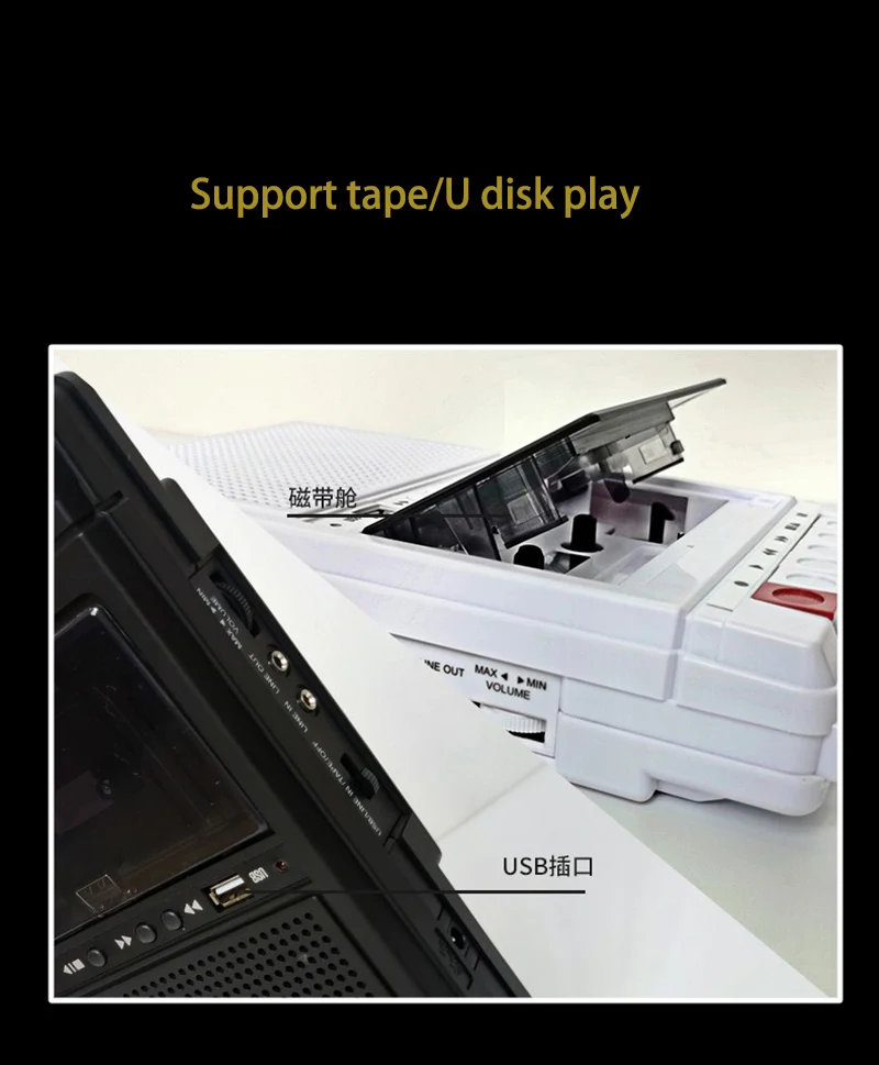 Ретро Стерео кассета плеер Walkman кассета лента Музыка Аудио Авто Обратный с рекордером внешний динамик USB воспроизведение