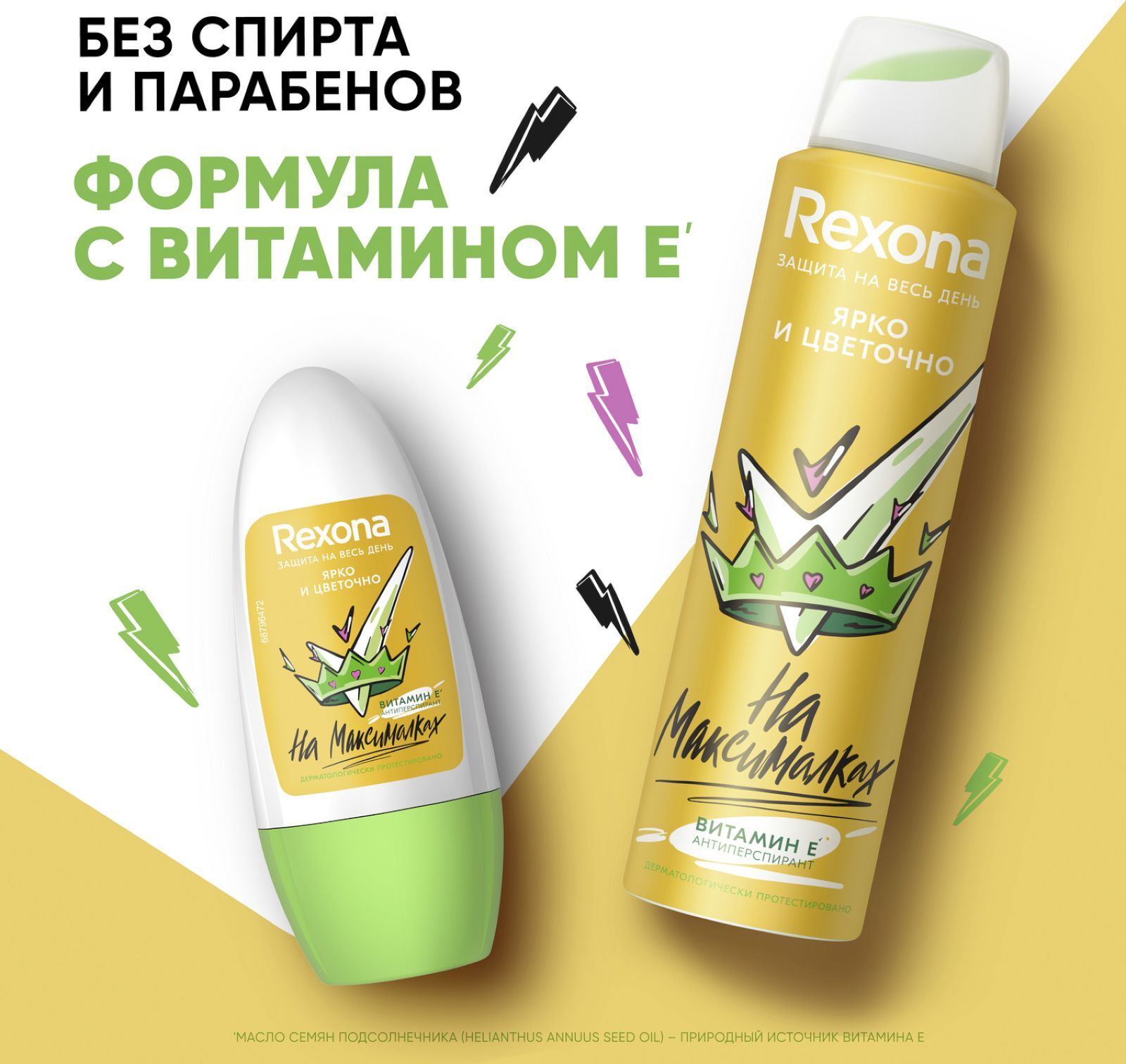 Описание: Давно искала эффективный дезодорант, но при этом с мягкой формулой, который подходит молодой и нежной коже подмышек? Rexona нашла решение! Стильный антиперспирант спрей Яркой и Цветочно с мягкой формулой – это защита от пота и запаха на 48 часов с витамином Е*, которая способствует увлажнению и восстановлению кожи подмышек и обеспечит тебе комфорт. Невидимая защита – не оставит следов, а игривый аромат сделает твой день! Наслаждайся модным и ярким цветочным ароматом, который включает в себя фруктовые нотки груши и ягод, окутанные свежим цветочным букетом из розы, фиалки и жасмина в обрамлении мягких сандаловых оттенков. Не содержит этиловый спирт и парабены. Для использования с 14 лет. Прогулочный шаг, неспешная пробежка, спринтерский бег ― тебе все по плечу, ведь мы позаботились о твоей защите. Чем бы ты ни занималась, ты будешь чувствовать только комфорт. Покоряешь ли ты новую вершину, спешишь ли на автобус, выступаешь ли с докладом или идешь на свидание, будь уверена, ты надежно защищена от пота и запаха - что бы ты ни запланировала, у Rexona есть решение! Наши продукты работают так же эффективно, как и ты. Мы стремимся узнать о поте как можно больше, чтобы затем использовать полученные знания для создания инновационных формул наших продуктов. Будь уверена, Rexona никогда не подведет! * масло семян подсолнечника (Helianthus Annuus Seed Oil )- природный источник витамина E