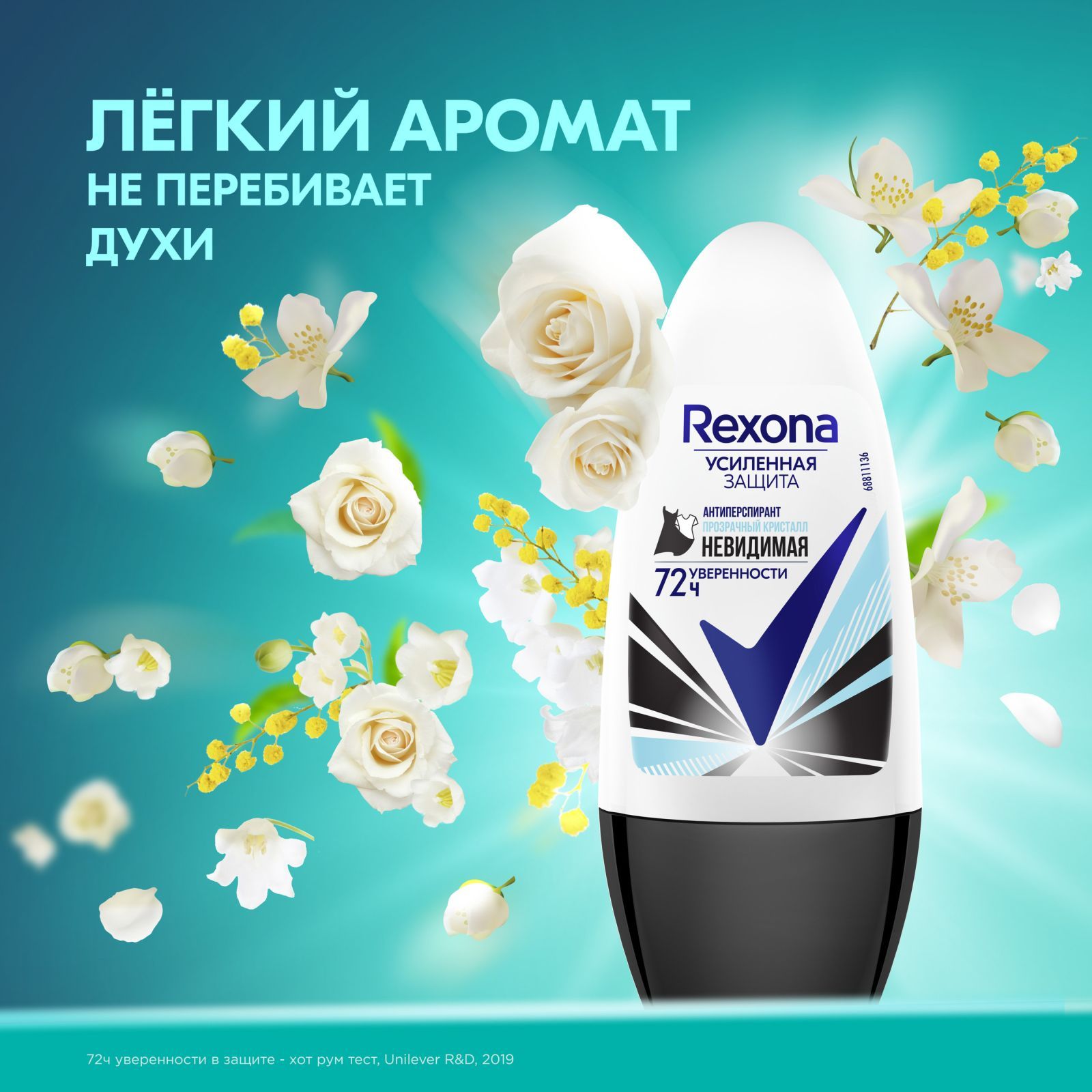 Rexona Антиперспирант шариковый женский Невидимая Прозрачный кристалл, для черного и белого 50 мл