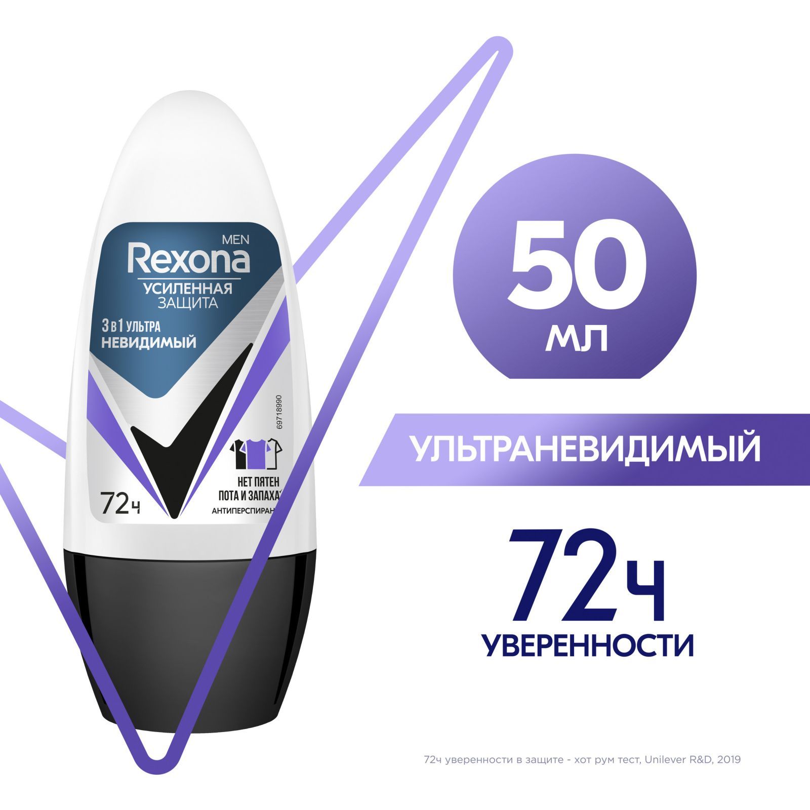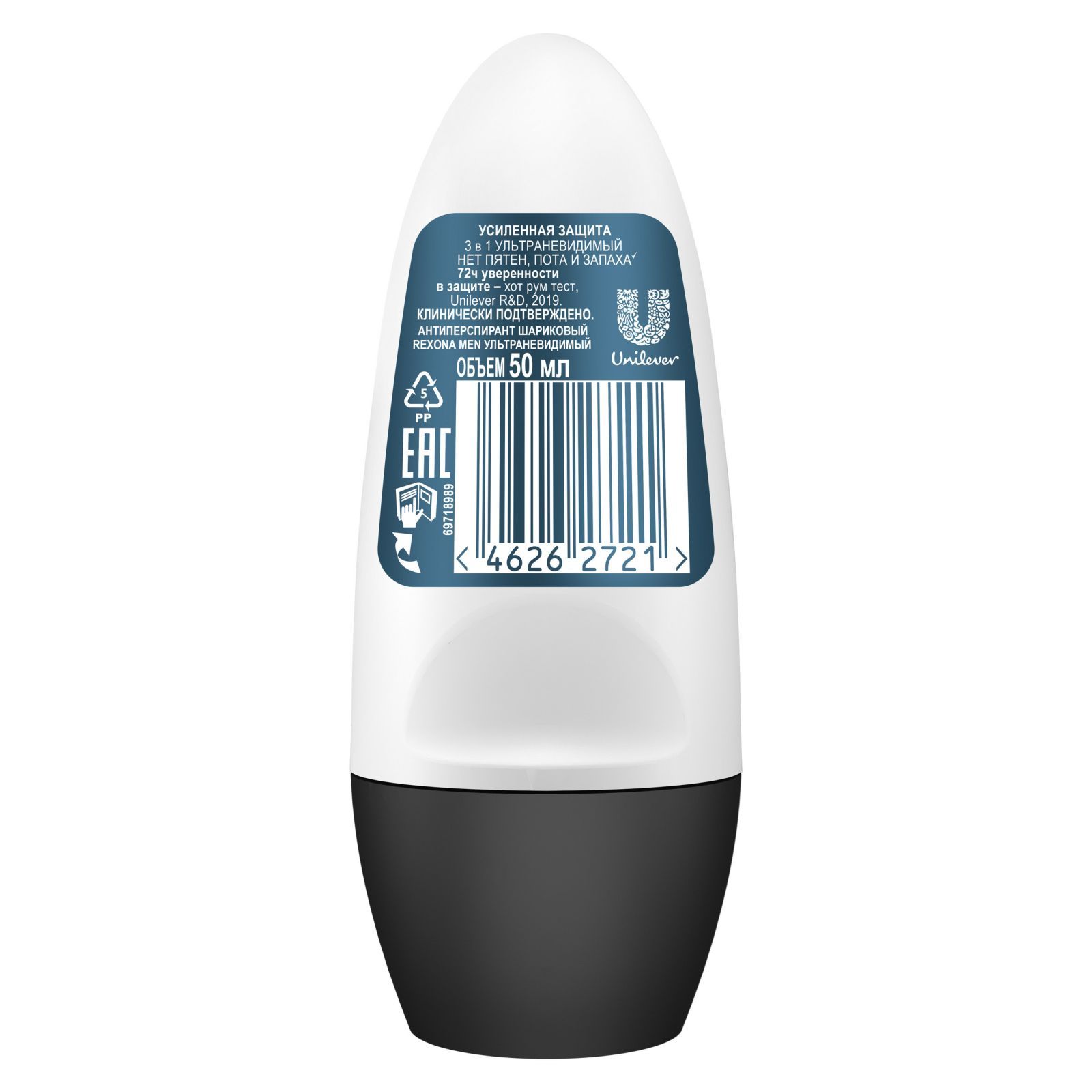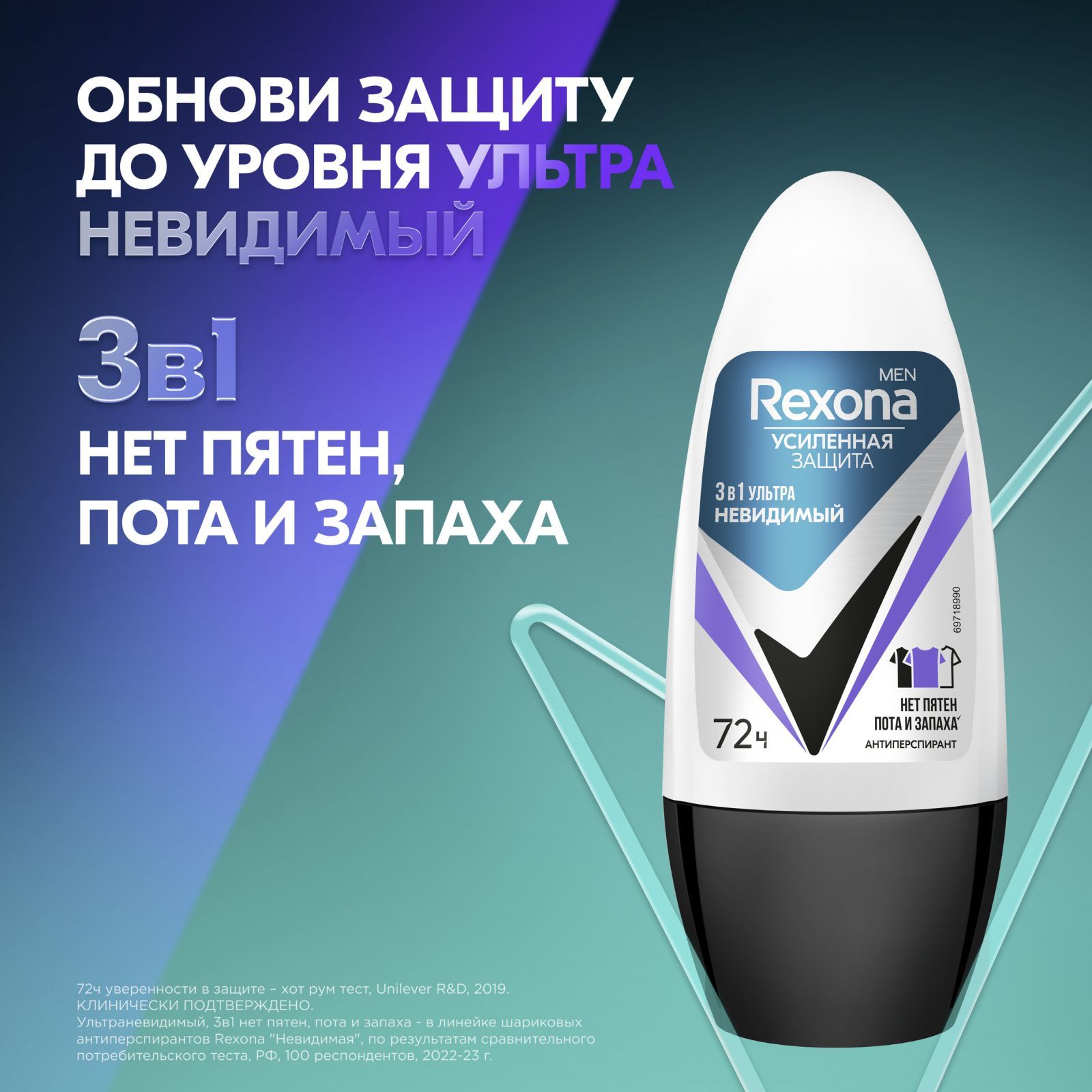 Rexona Men УЛЬТРАНЕВИДИМЫЙ антиперспирант шариковый 72ч уверенности 3в1 нет пятен, пота и запаха 50 мл